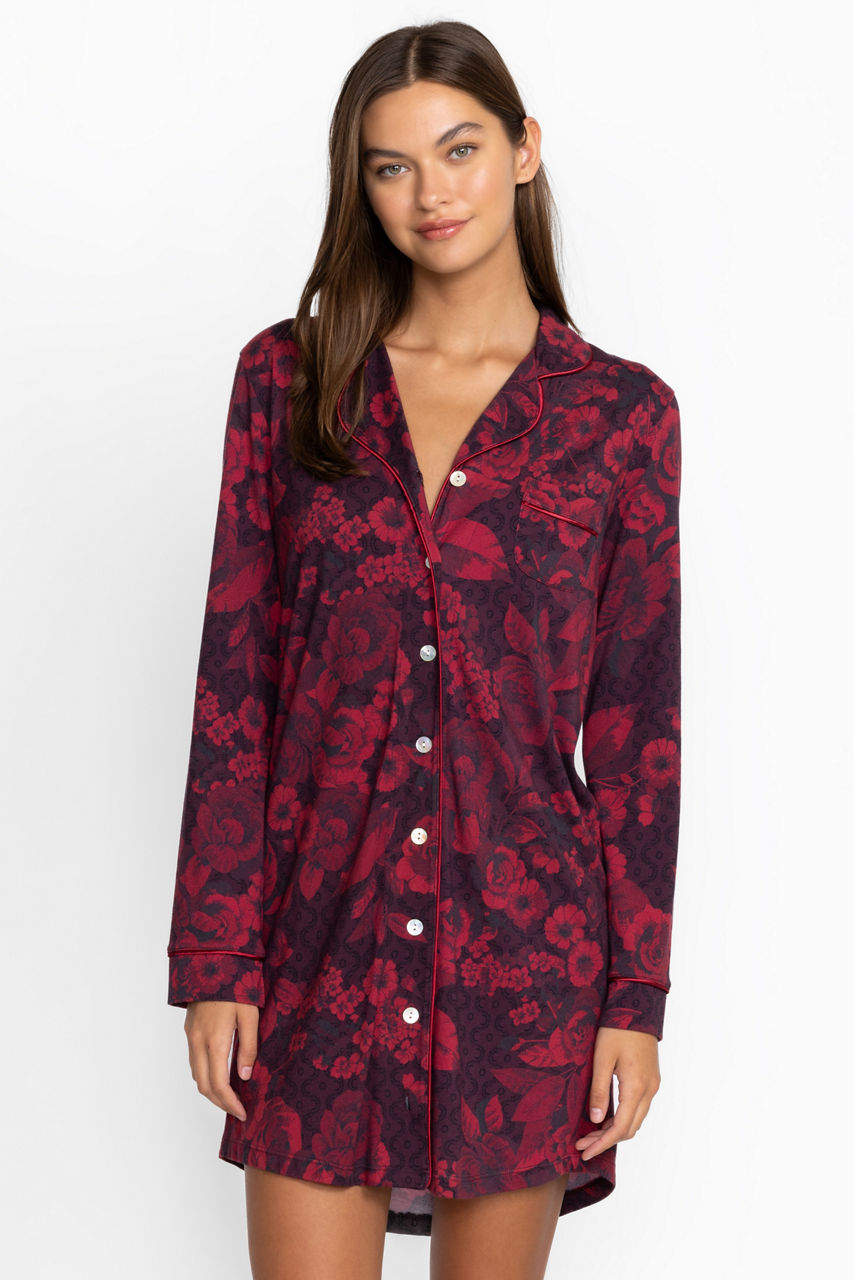 Offering cozy comfort for cool evenings, the Neena Long Sleeve Shirt is a modern take on classic sleepwear. Crafted from a luxuriously soft cotton blend, this sleep shirt features and easy button front with an open lapel and chest pocket. Pair with comfortable slippers for a calming night in.
