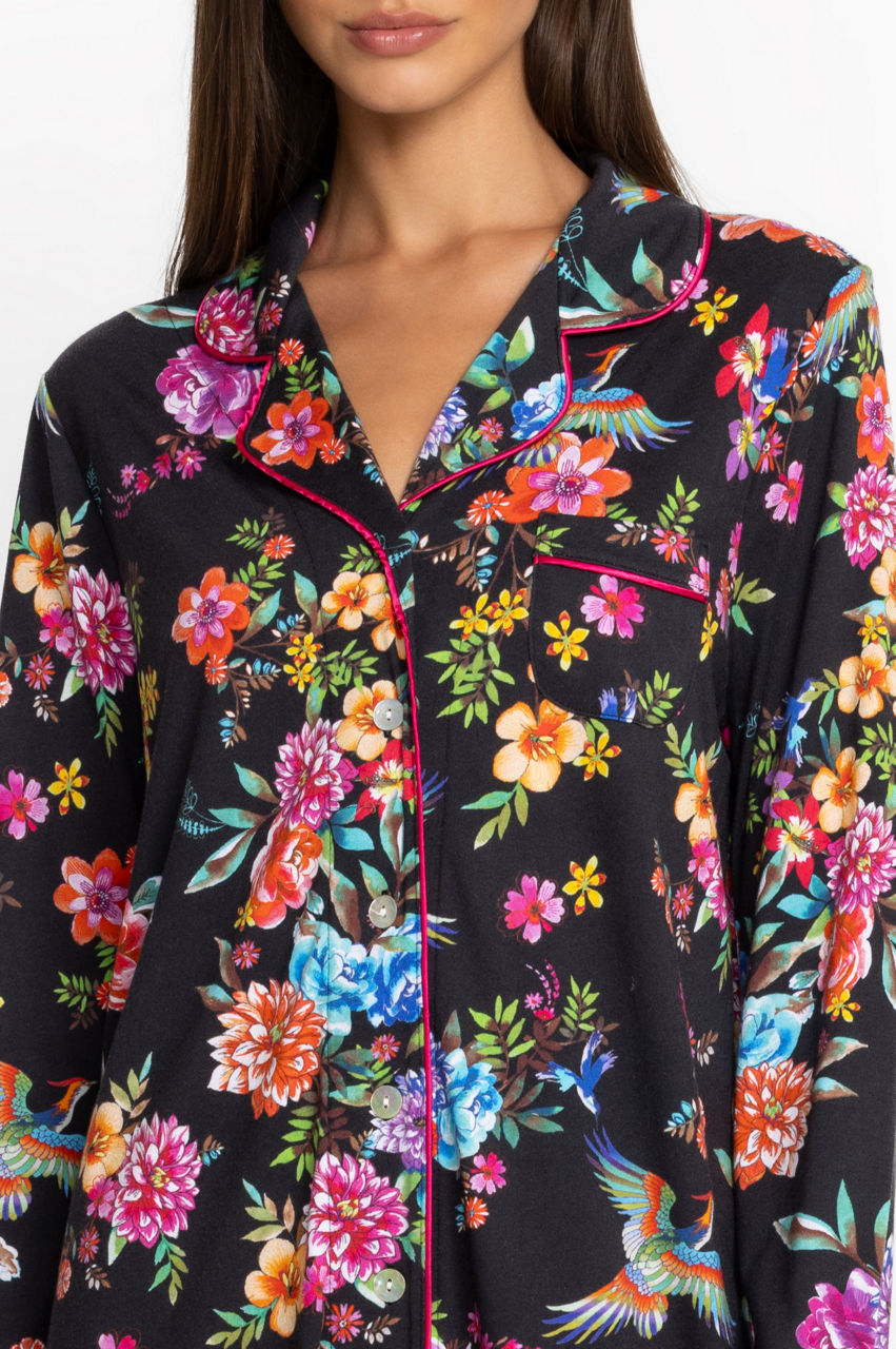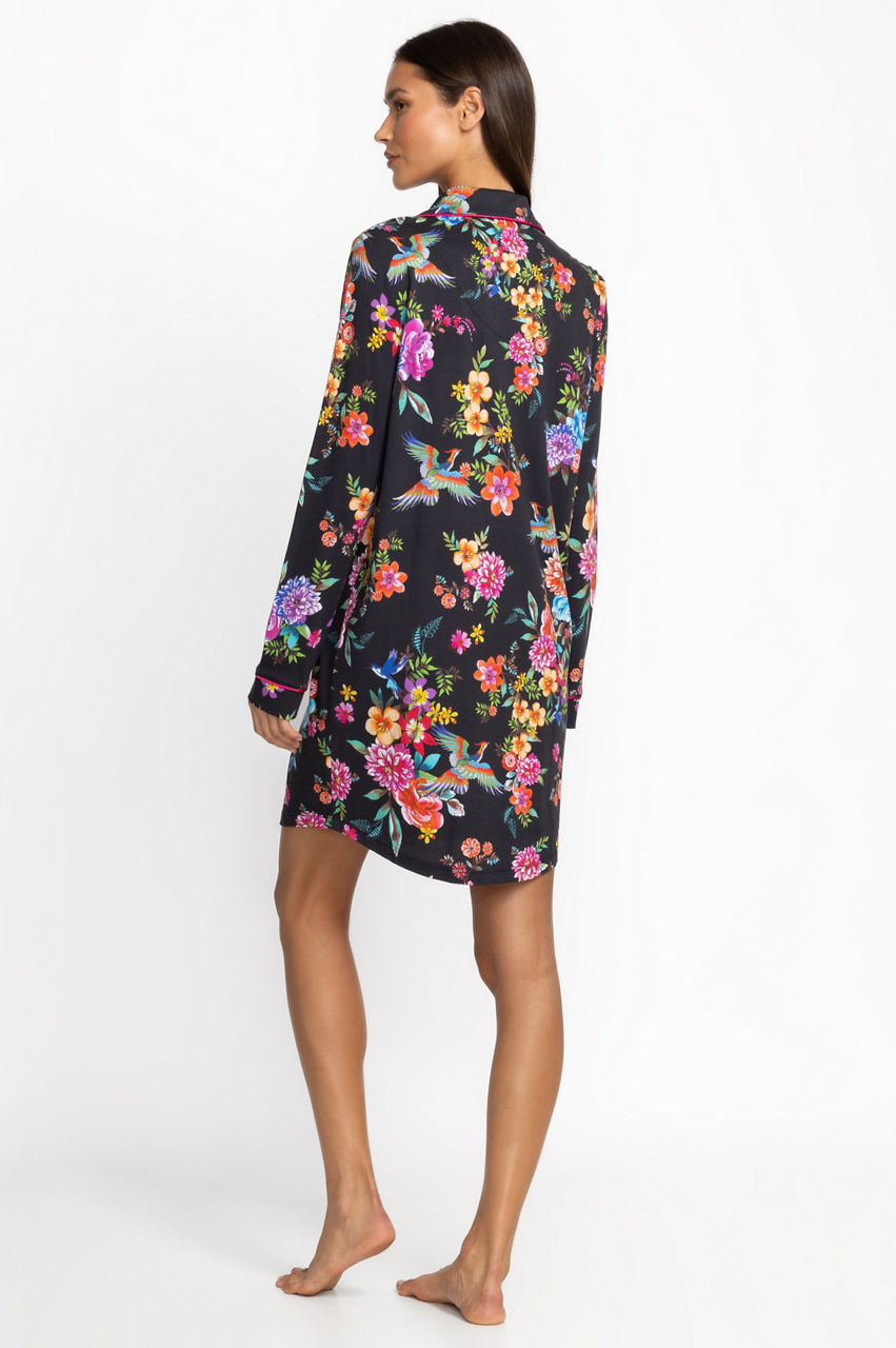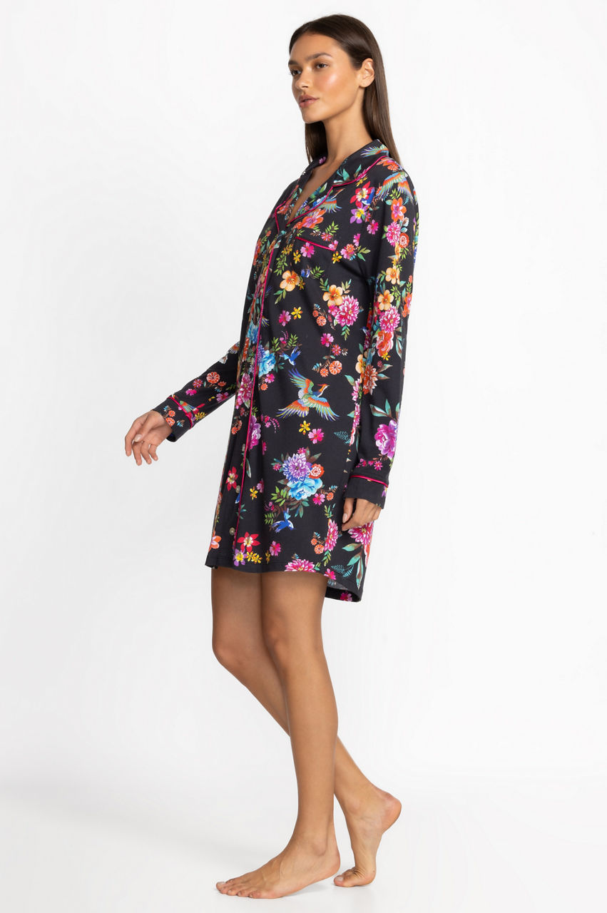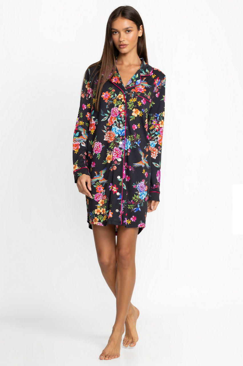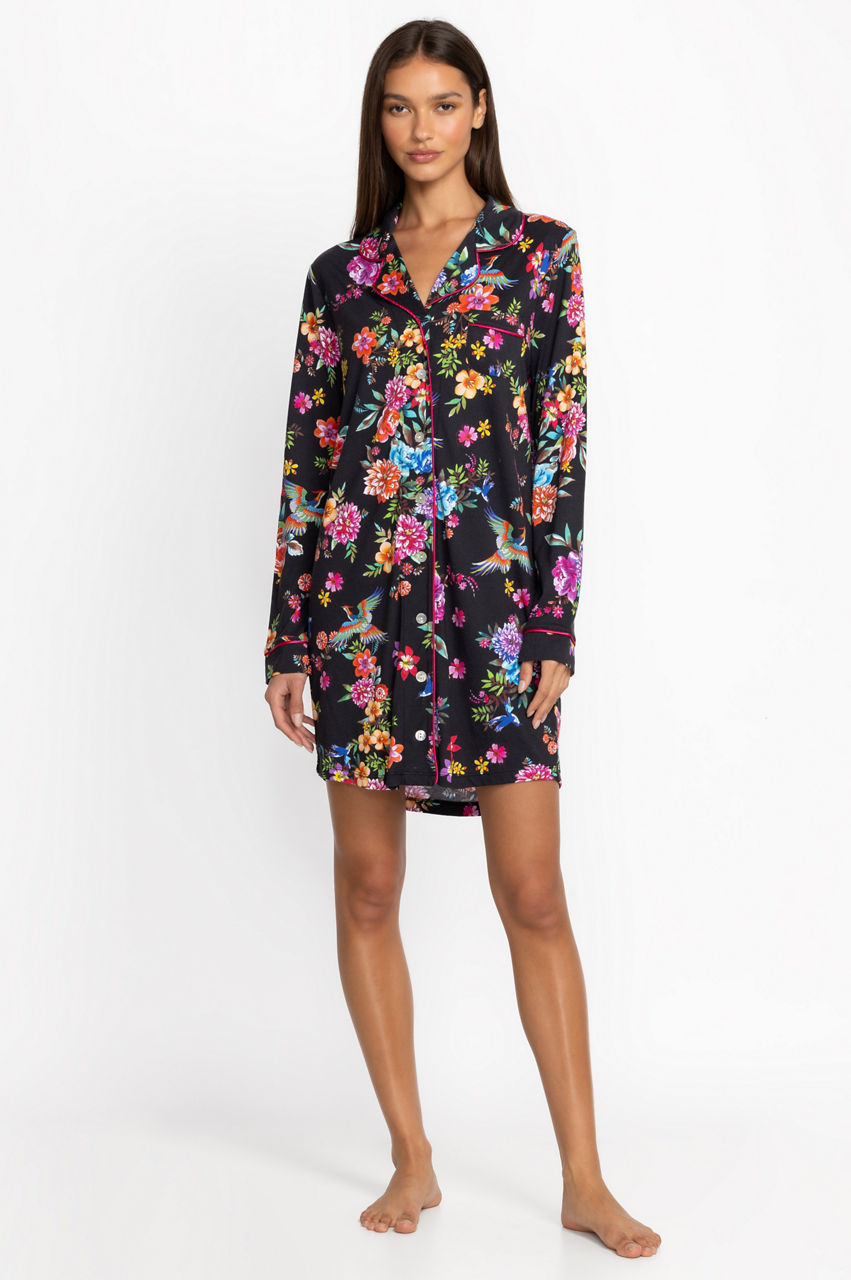 Offering cozy comfort for cool evenings, the Neena Long Sleeve Shirt is a modern take on classic sleepwear. Crafted from a luxuriously soft cotton blend, this sleep shirt features and easy button front with an open lapel and chest pocket. Pair with comfortable slippers for a calming night in.