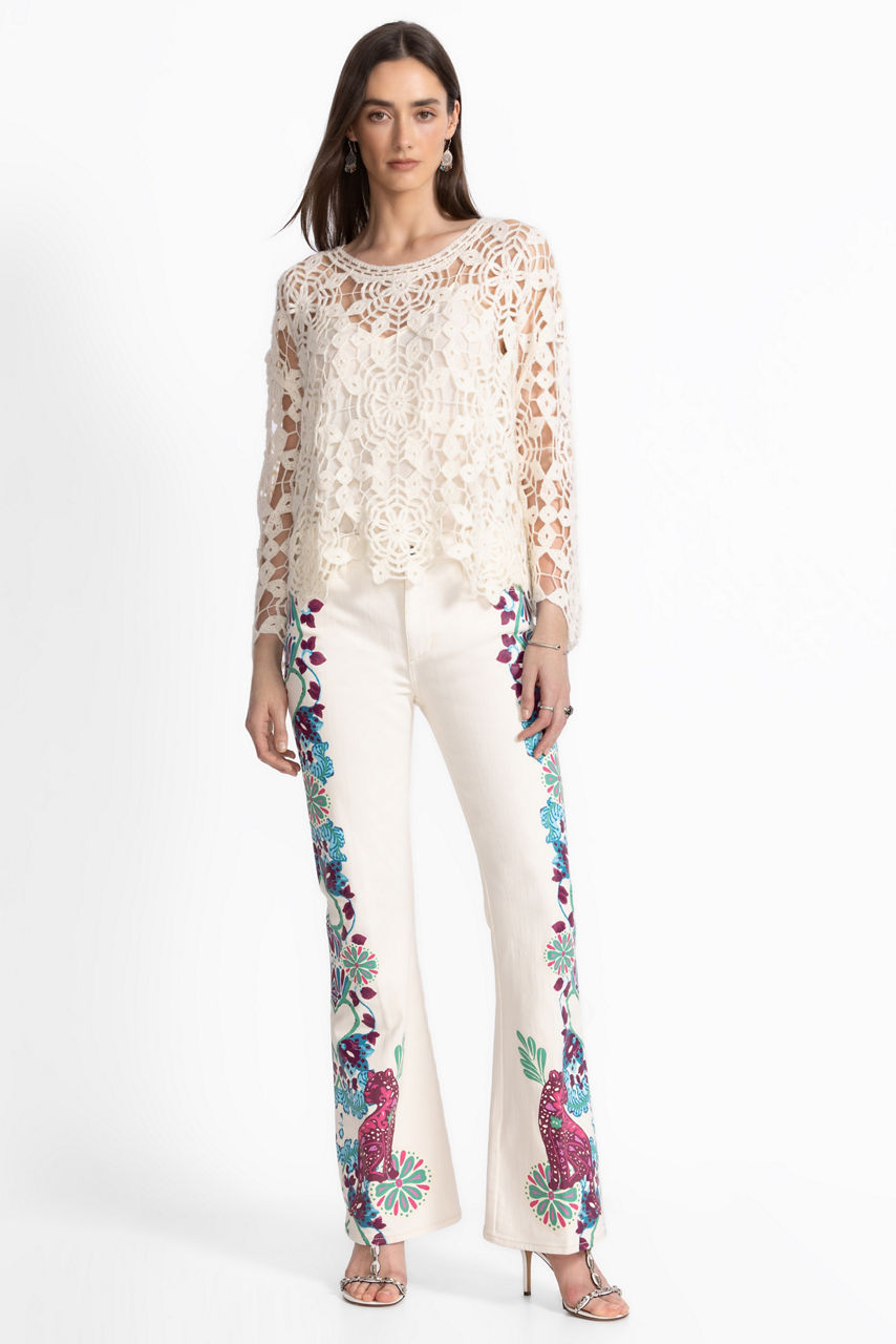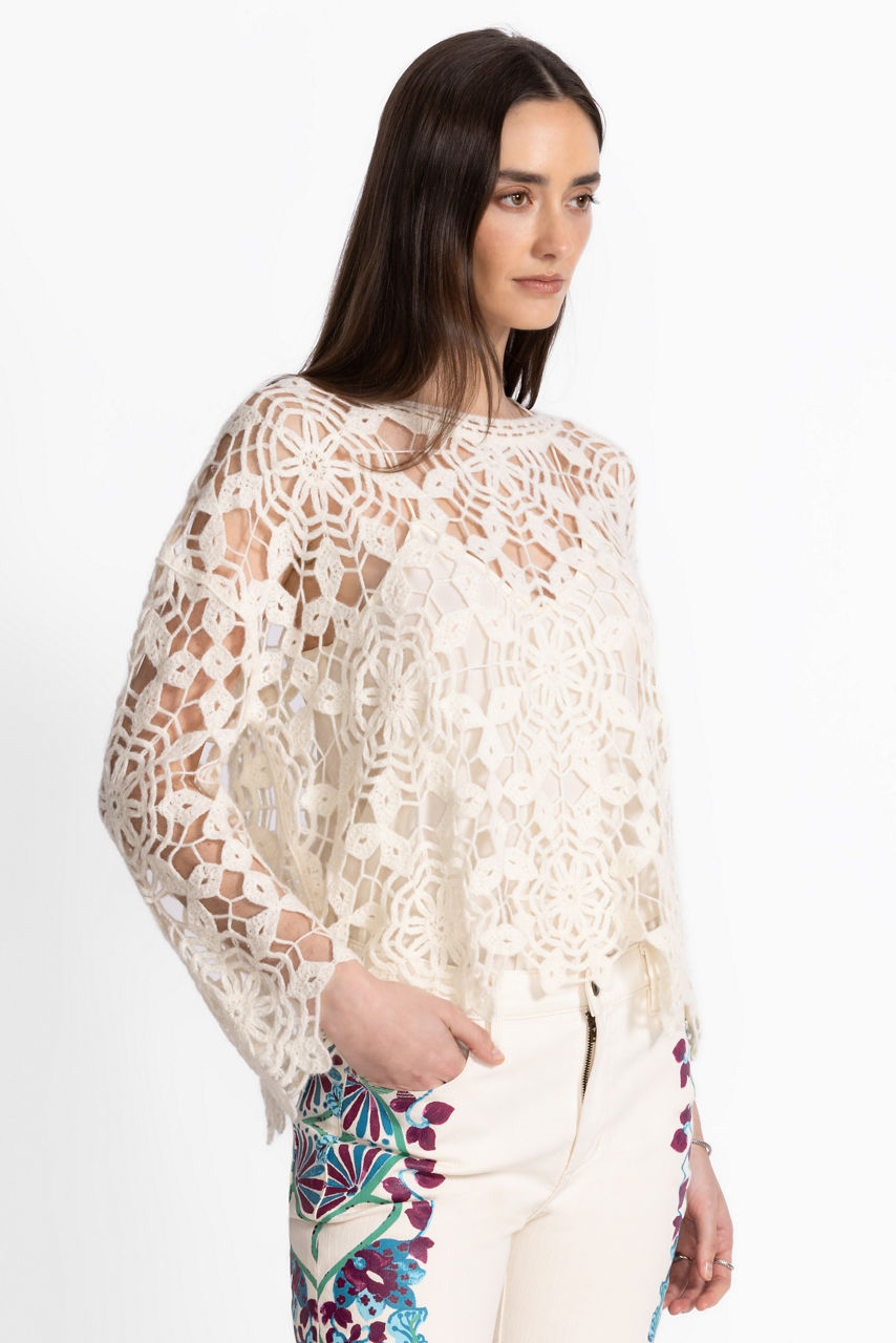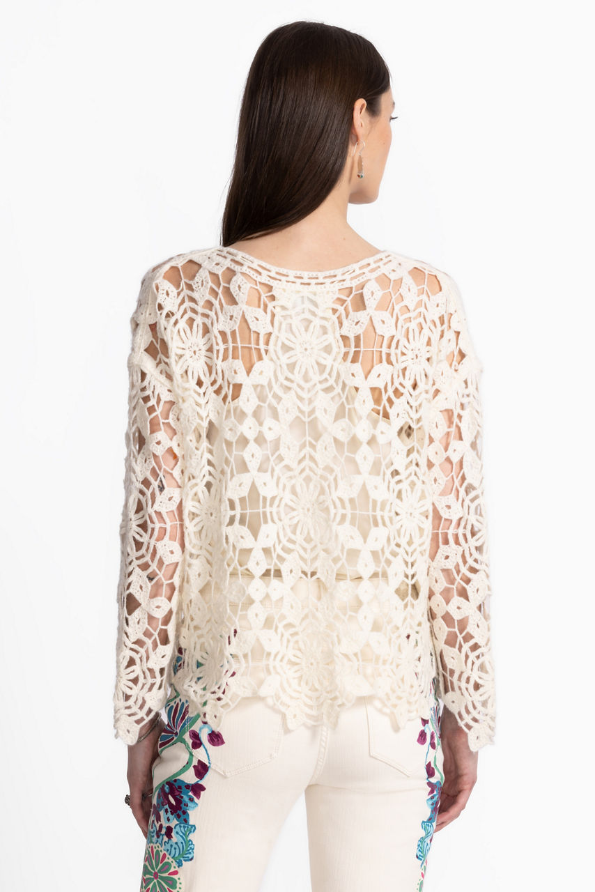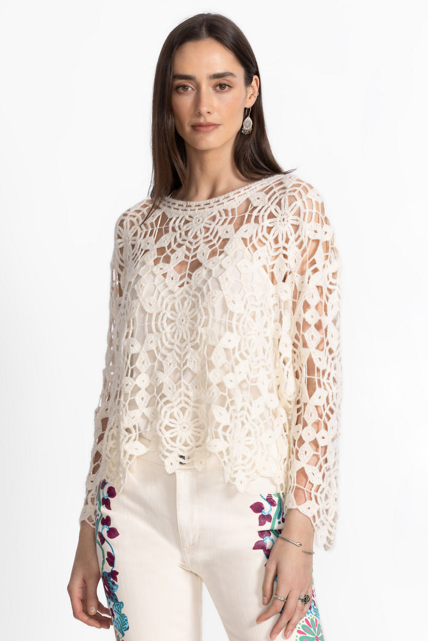 Crafted from a rich wool and cashmere blend, the Picado Crochet Pullover features a in intricate crocheted floral pattern. Designed with a wide crew neck and a beautiful scalloped hemline, this pullover is finished with a unique whipstitch detail at the shoulders. Pair with a denim skirt and trendy boots for a youthful weekend look.