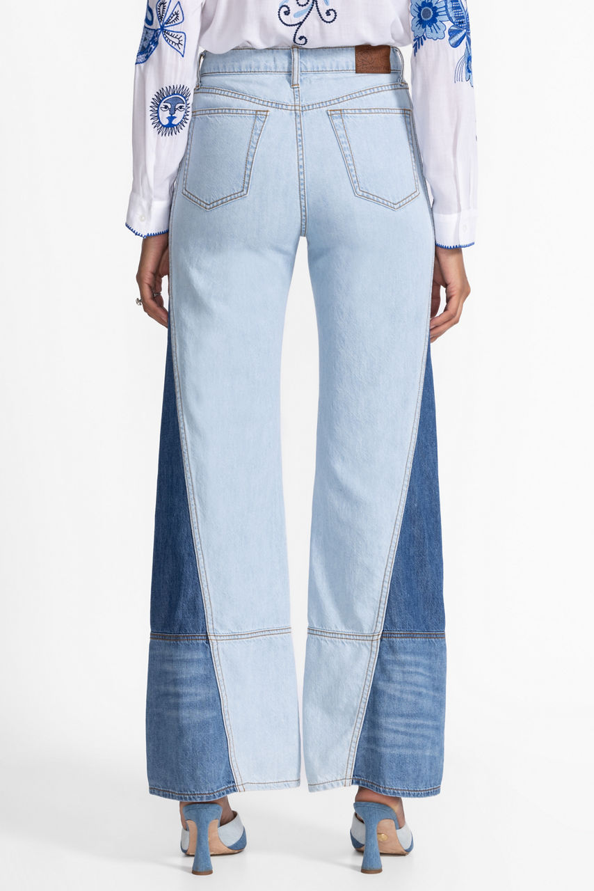 Thoughtfully designed in contrasting hues of blue denim, the Pieced Straight Flare Jeans create a visually stunning piece of artwork. Crafted from 100% cotton, these unique jeans feature a front fly and flared legs highlighted by bold denim patchwork. Pair with a classic white button-down and trendy ankle boots for a polished casual look.