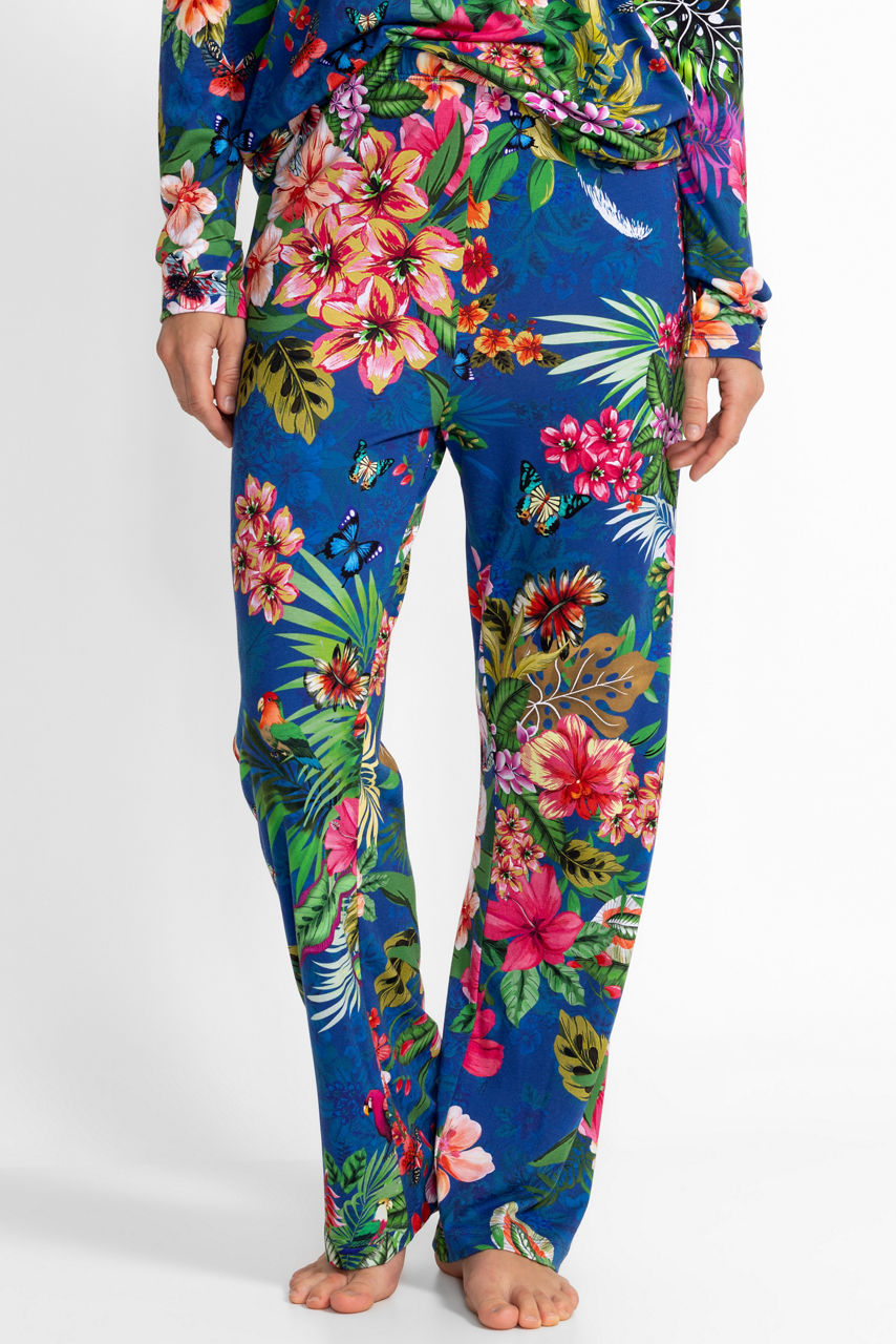 Beautifully adorned with a bold tropical print, the Raglan PJ Set is crafted in an ultra-soft cotton blend. Featuring a crew neckline with contrasting trim and long sleeves, this two-piece set is complete with long pants for a cozy feel. Just add your favorite slippers for a relaxing evening in.