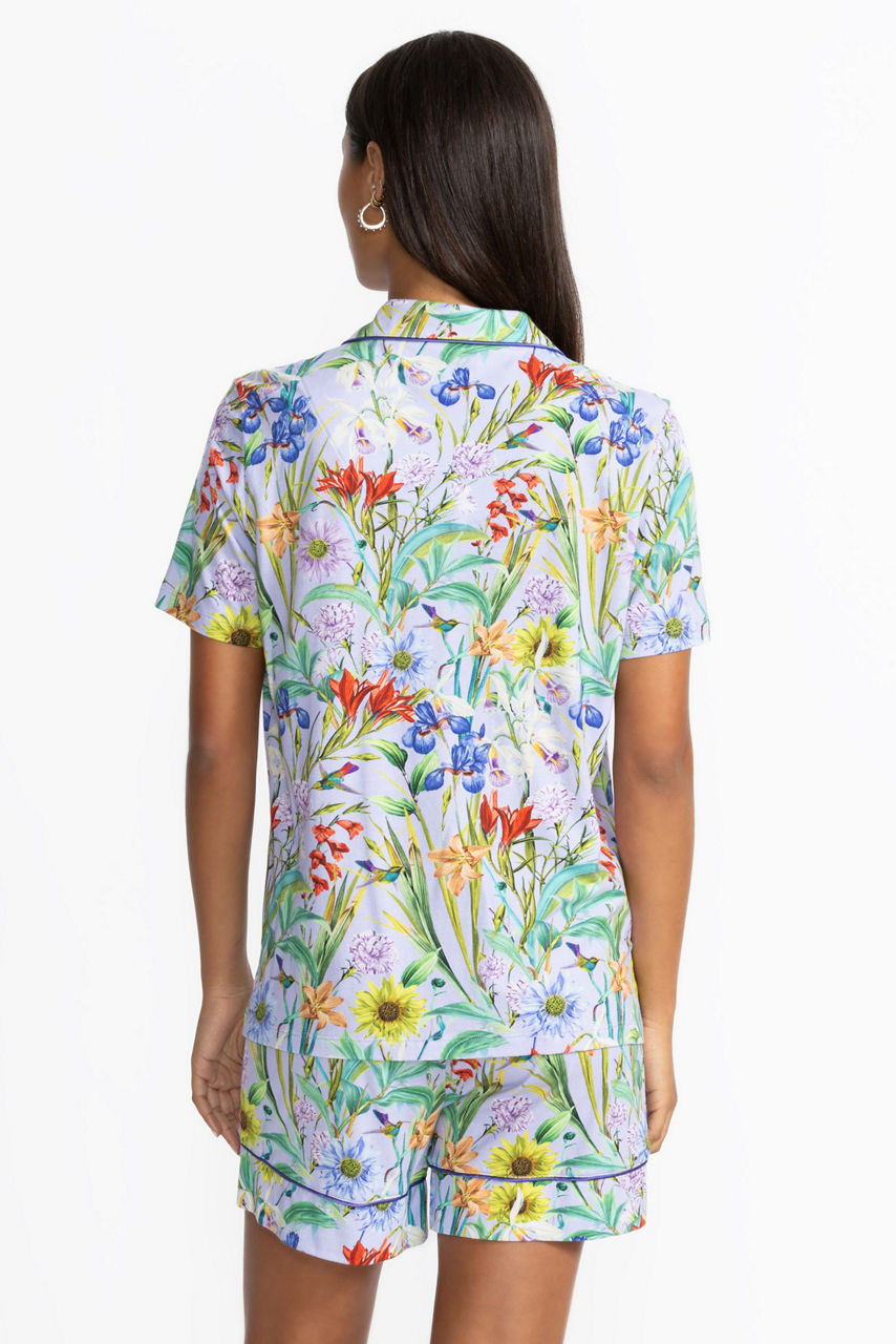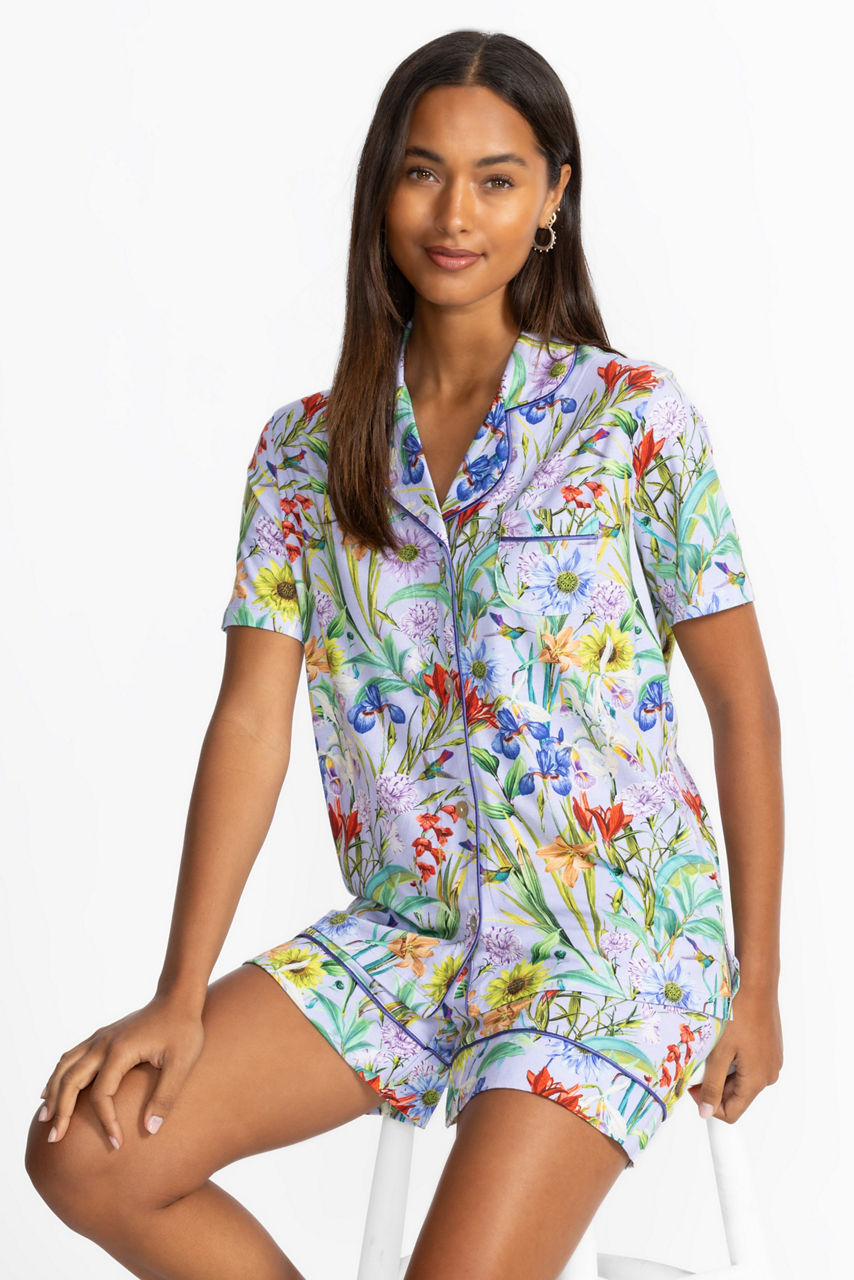 Stay cool and cozy in our Short PJ Set, made from a buttery-soft blend of cotton and modal. Featuring a button-up top and matching shorts, this set is perfect for warm nights and lazy mornings. The vibrant Daphne floral print adds a fresh, botanical touch to your loungewear. Lightweight, breathable, and machine washable—comfort has never looked so good.