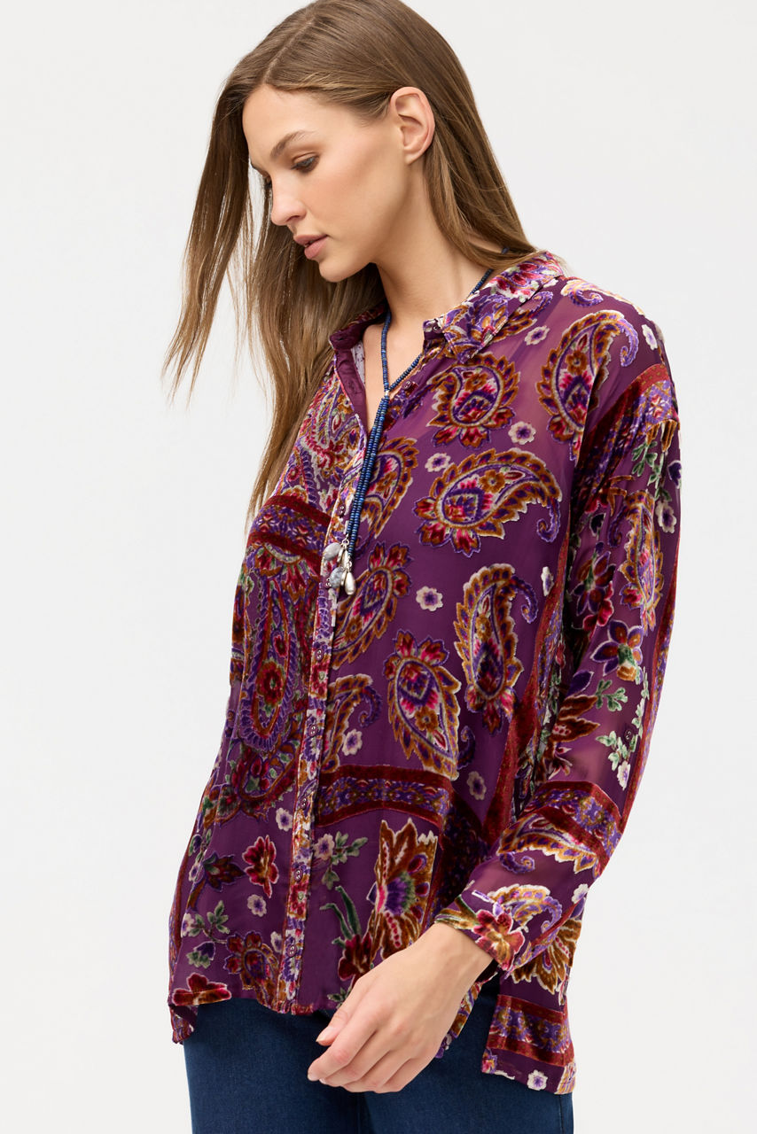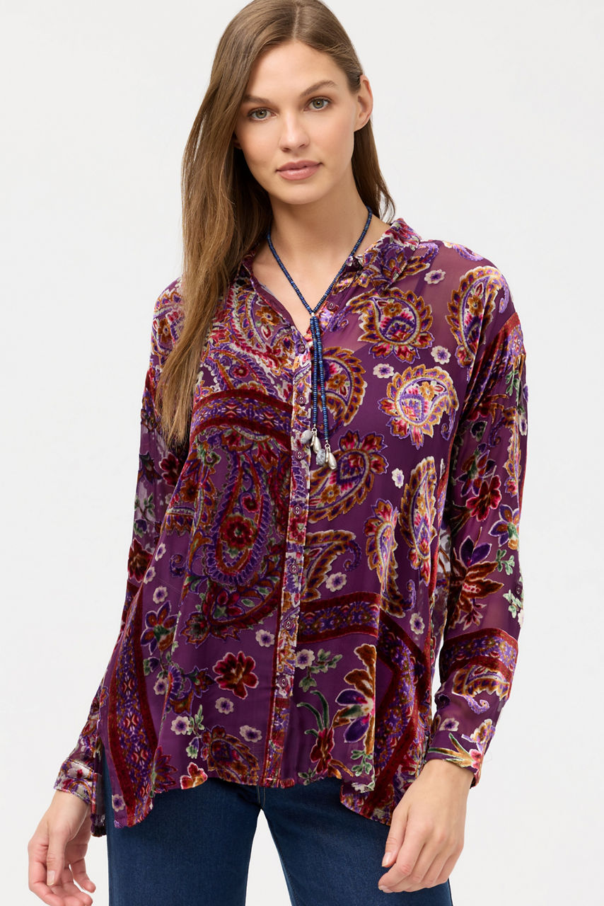 Crafted from an easy silk blend, the Burnout Domitila Slim Audrey Collared Shirt is equal parts comfort and elevated style. Designed with a classic collared button-front, this shirt features a drop shoulder and roll-tab sleeves and is finished with side slits for a relaxed fit. Pair with relaxed-fit denim and classic sneakers for an elevated everyday look.