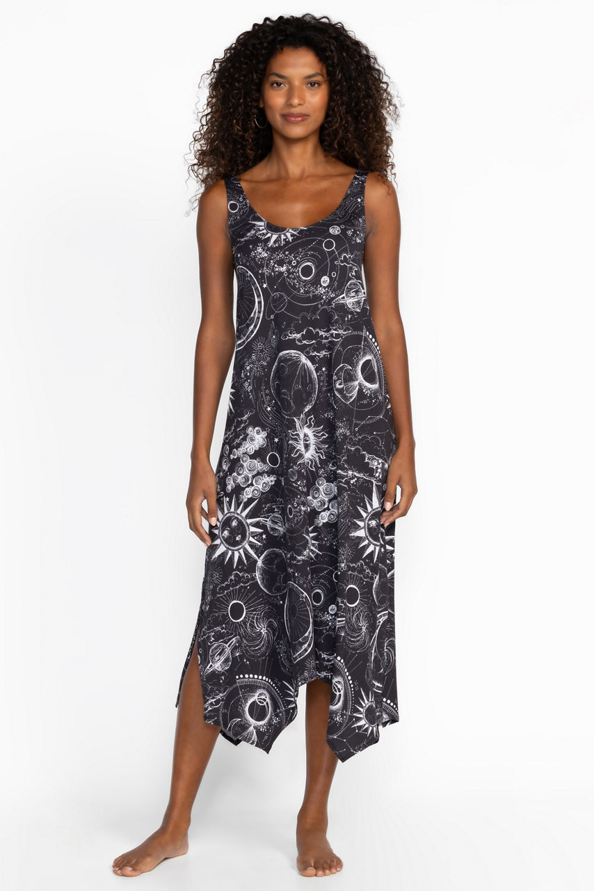 Crafted from a luxuriously soft and breathable cotton blend with a hint of stretch, the Tank Sleep Dress is perfectly designed for warm nights. Featuring a scoop neckline and handkerchief hemline, this sleeveless night dress is embellished with an ornate celestial pattern. Pair with fluffy slippers and a lightweight robe for an evening in.