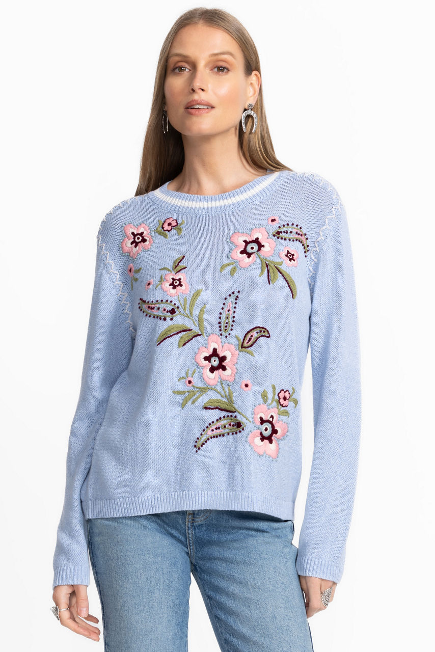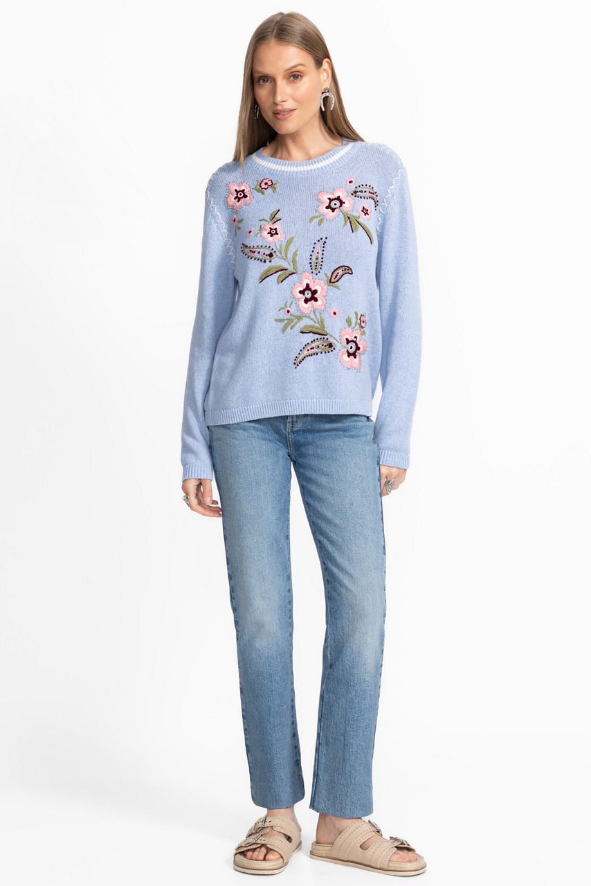 The Whipstitch Pullover is thoughtfully crafted from a unique cotton and linen blend. Designed with a crew neckline and long sleeves, this cozy pullover is embellished with an intricate whipstitch detail at the seams and finished with bold floral embroidery. Pair with straight-leg jeans and loafers for a polished casual look.