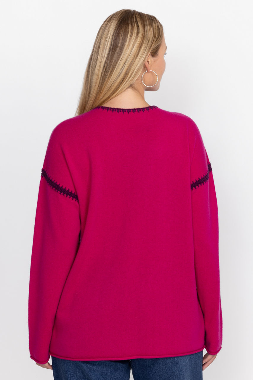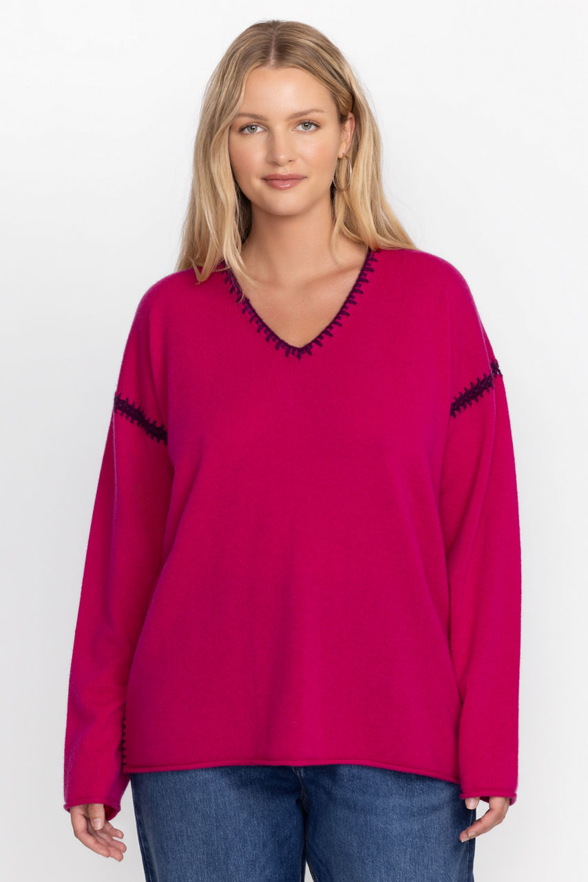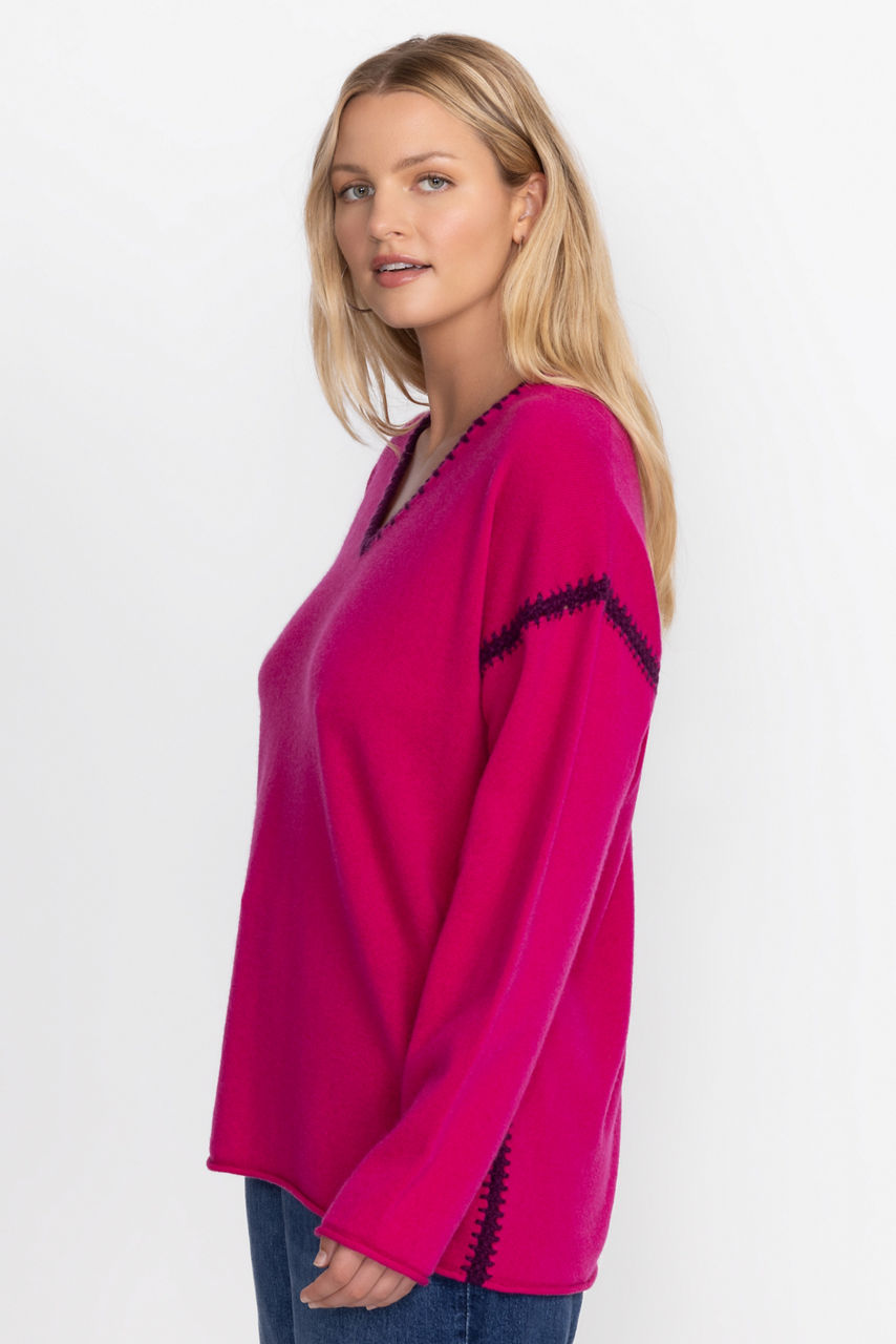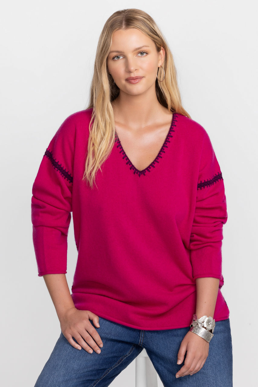 Crafted from a rich wool and cashmere blend, the Whipstitch V-Neck Pullover is equal parts cozy and stylish. Featuring a V-neckline and a drop shoulder, this luxurious pullover is finished with a contrast whipstitch detailing throughout the neck and shoulders. Pair with relaxed-fit jeans and fashion sneakers for a polished casual look.