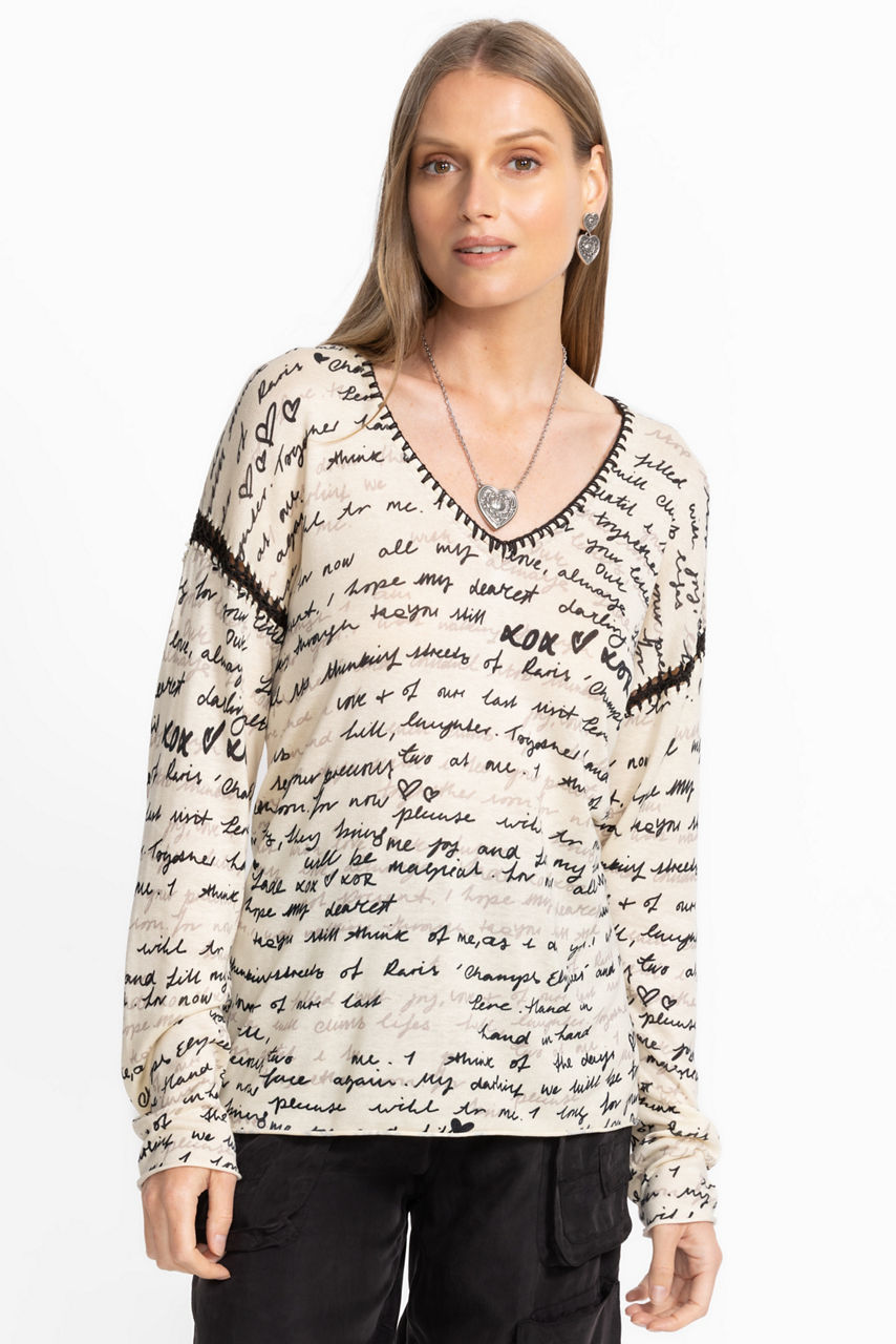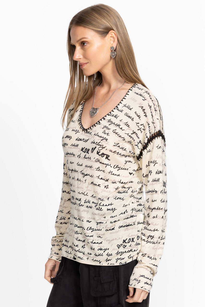 Thoughtfully embellished with a brilliant series of love notes woven into the fabric, the Whipstitch V-Neck Pullover is crafted from 100% luxurious silk. Designed with a V-neckline and dropped shoulders, this cozy pullover is embellished at the seams with a decorative whipstitch. Pair with a maxi skirt and tall boots for a timeless evening look.