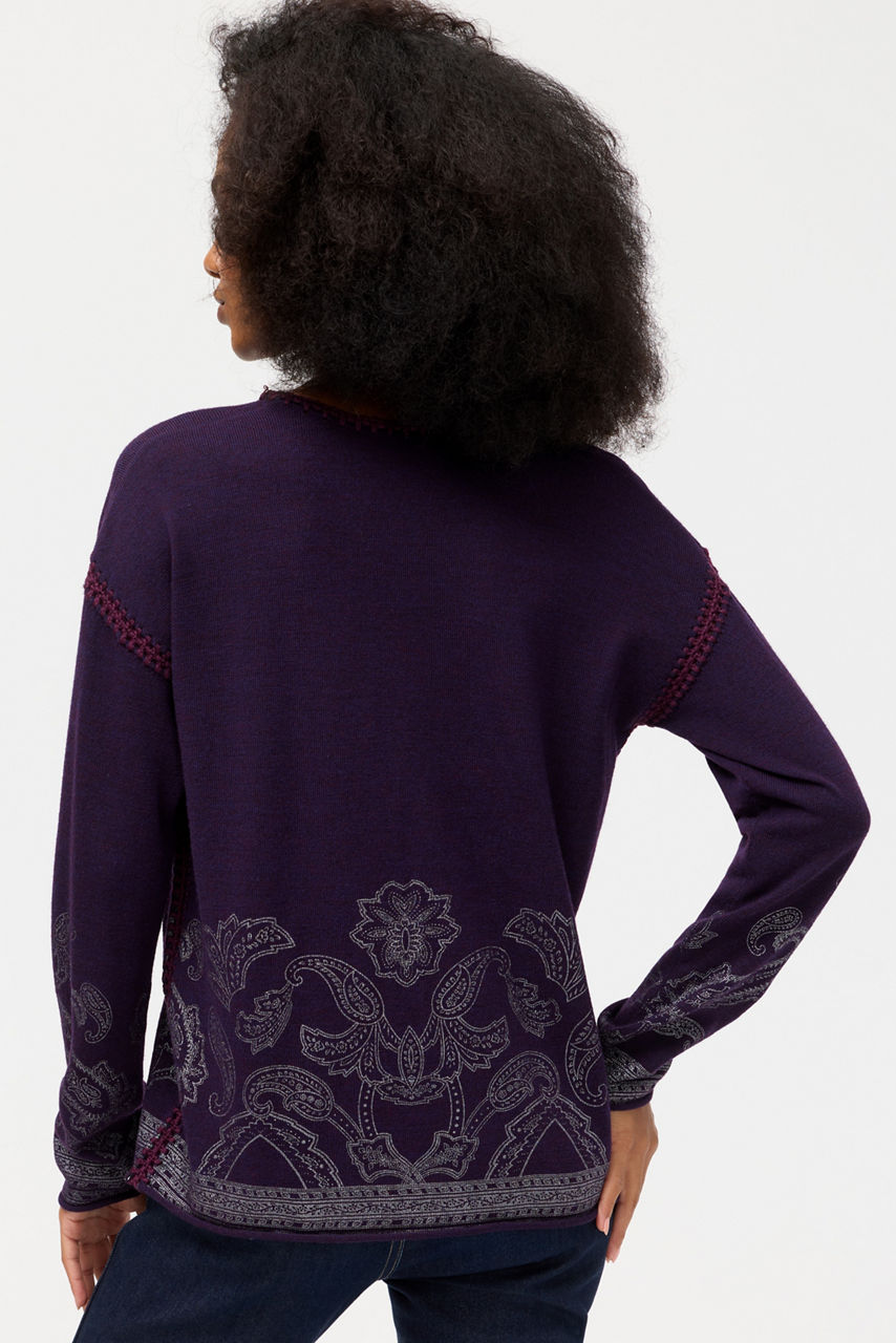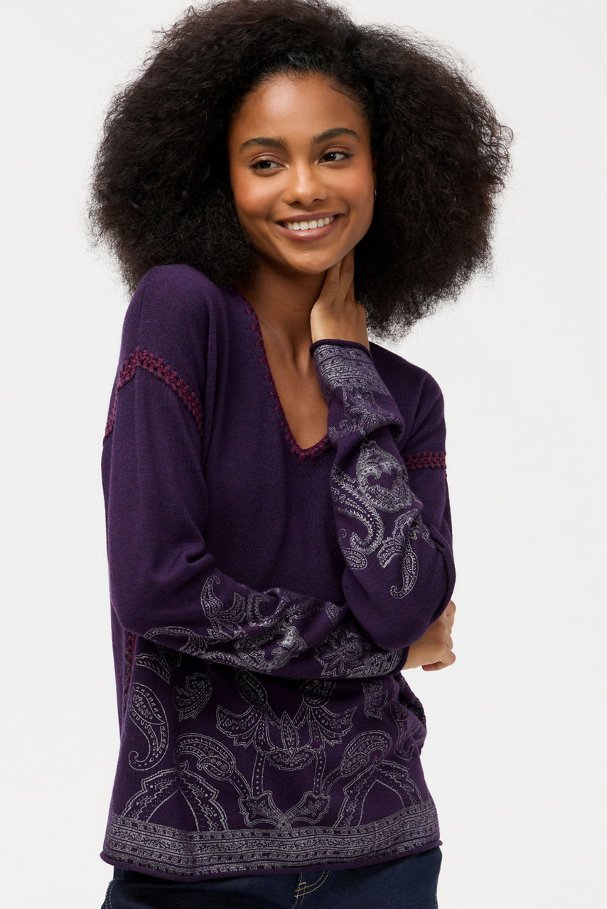 The beautiful Whipstitch V-Neck Pullover is crafted from 100% rich wool for a timeless look and feel. Designed with a V-neckline and long sleeves, this cozy pullover is finished with intricate whipstitch detailing at the edges and an eye-catching pattern. Pair with relaxed-fit denim and a coordinating scarf for the coolest days of the year.