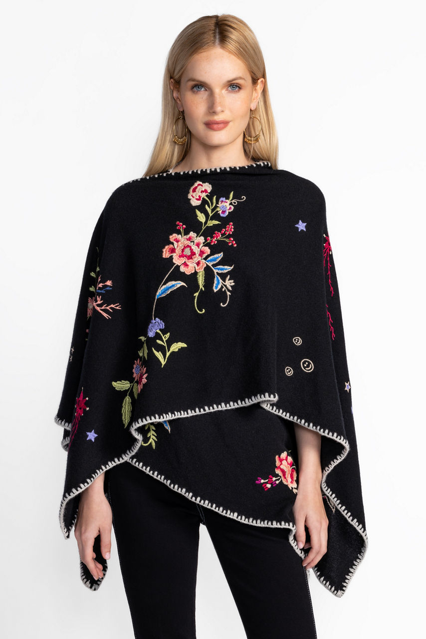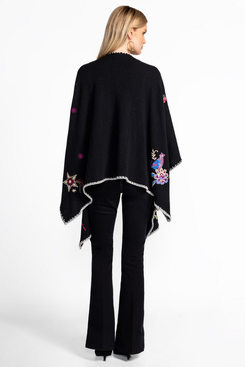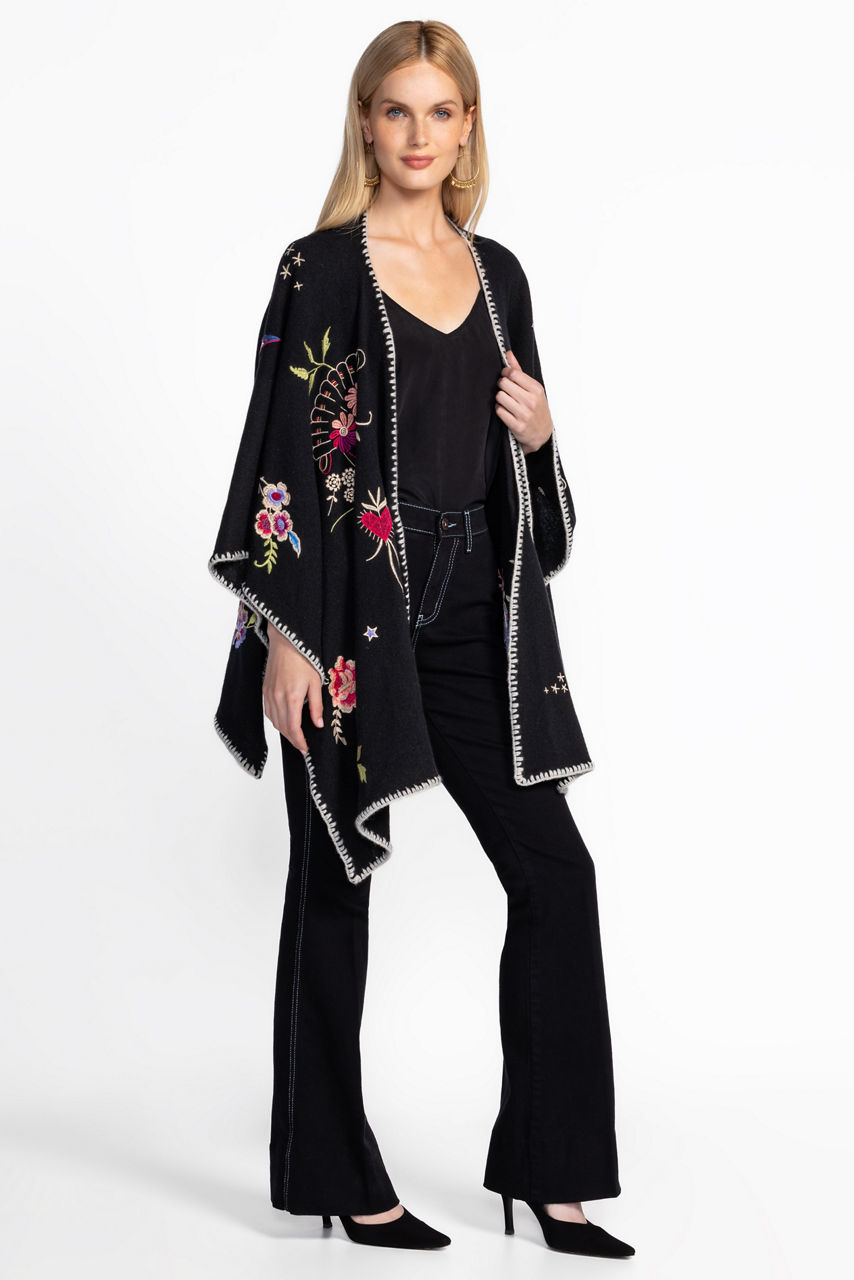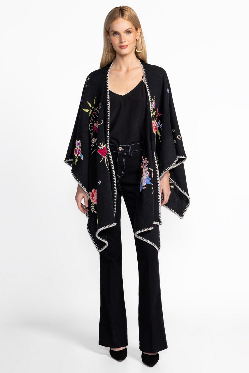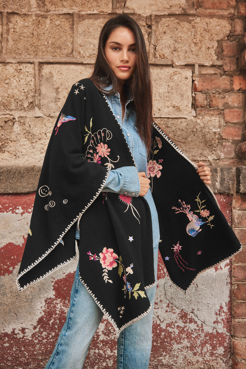 Crafted in a cozy wool and cashmere blend, the Whipstitch Wrap adds a refined finish to any look. Embellished in contrasting whipstitch at the edges, this wrap is designed to sit comfortably at the shoulders to allow the intricate placement embroidery to take center stage. Layer over a fitted turtleneck and leggings for an extra layer of warmth on a cool evening.