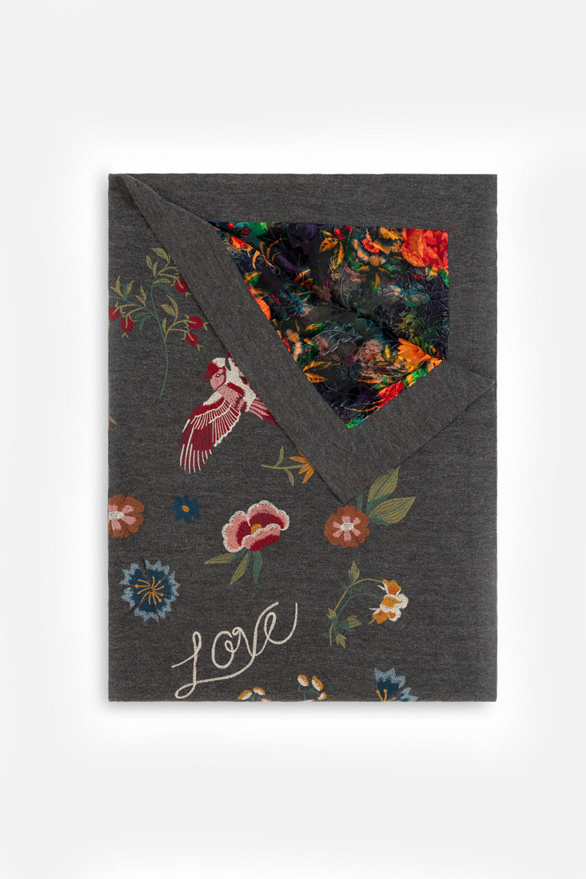 Designed to add texture and color to classic decor, the Throw Blanket is fully reversible featuring two unique designs. Offering a rich silk velvet embellished with a bold colorful design on one side and classic or embroidery on the reverse, this posh throw is finished on each side with a wide border. Add to the back of a sofa or the arm of a chair for an elevated home decor statement.