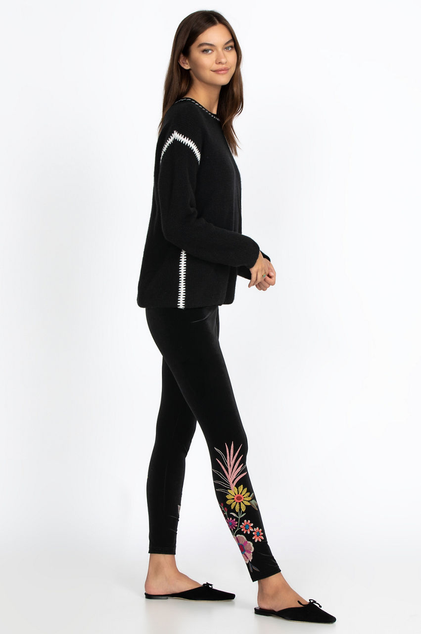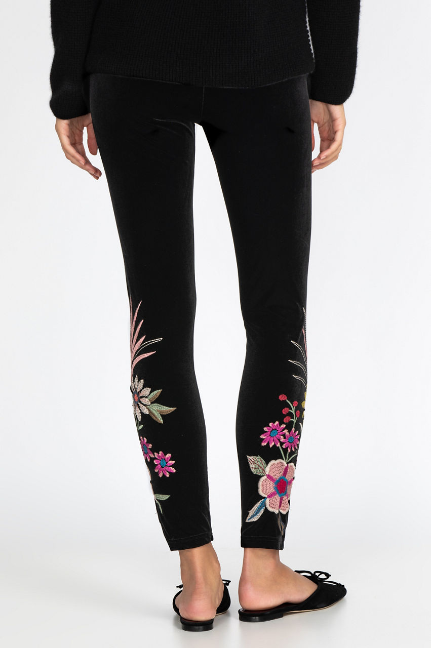 Leggings are a Fall staple. The Tiarei Stretch Velvet Leggings are no exception with their stretchy velvet fabric and floral embroidery details. Soft and comfortable, these leggings will quickly become a favorite with their colorful details. Use them to elevate a simple outfit with white sneakers and a plain tee, or pair them with your favorite floral accessories.