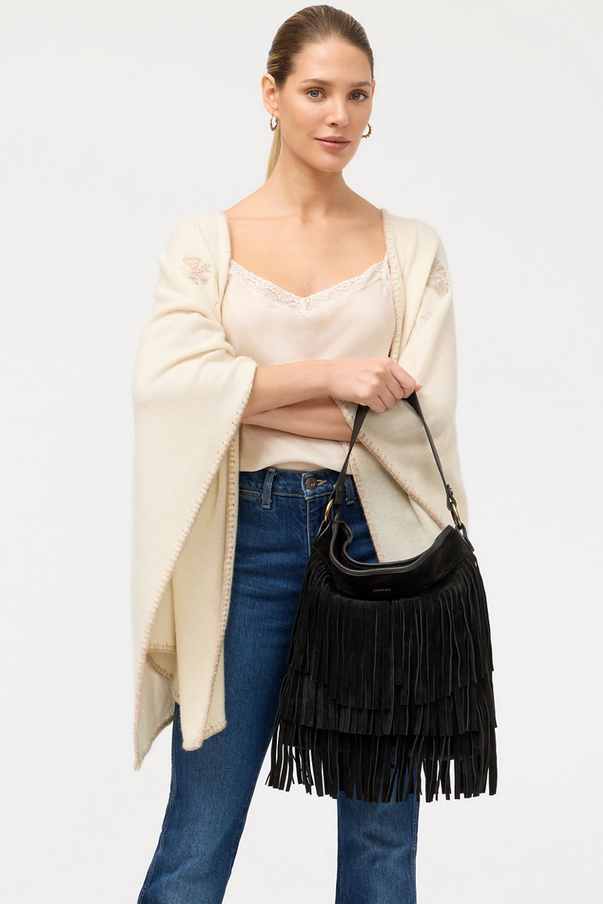 TIERED FRINGE ITALIAN LEATHER SHOULDER BAG