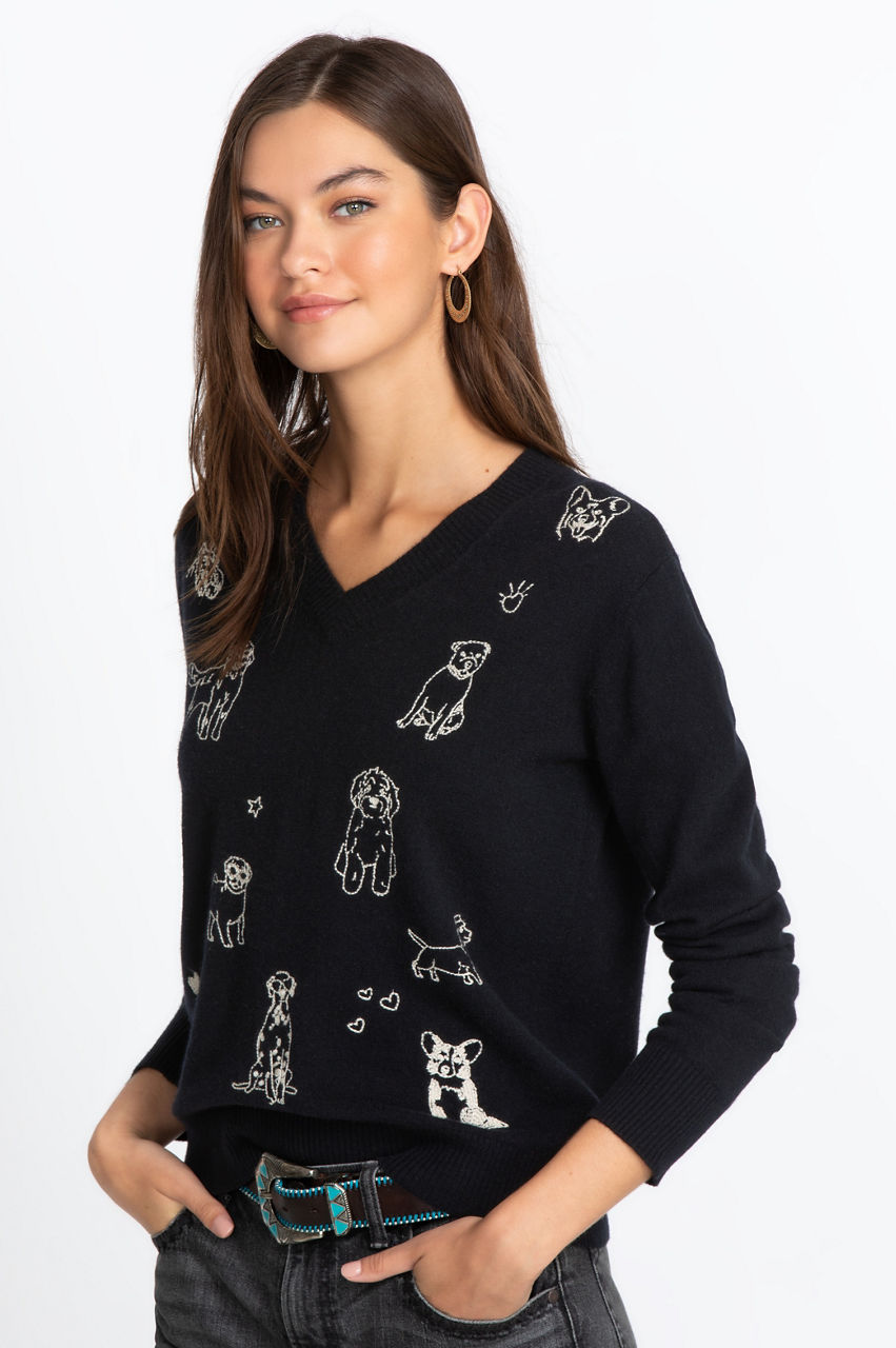The Tippi V-Neck Pullover features a delicate wool and cashmere blend that creates a soft and comforting texture. The embroidery will showcase the fact that you re an animal lover while adding a touch of originality to your outfits. This top will soon become a go-to piece, whether you pair it with slacks for a sophisticated look or create a laidback look with some jeans.