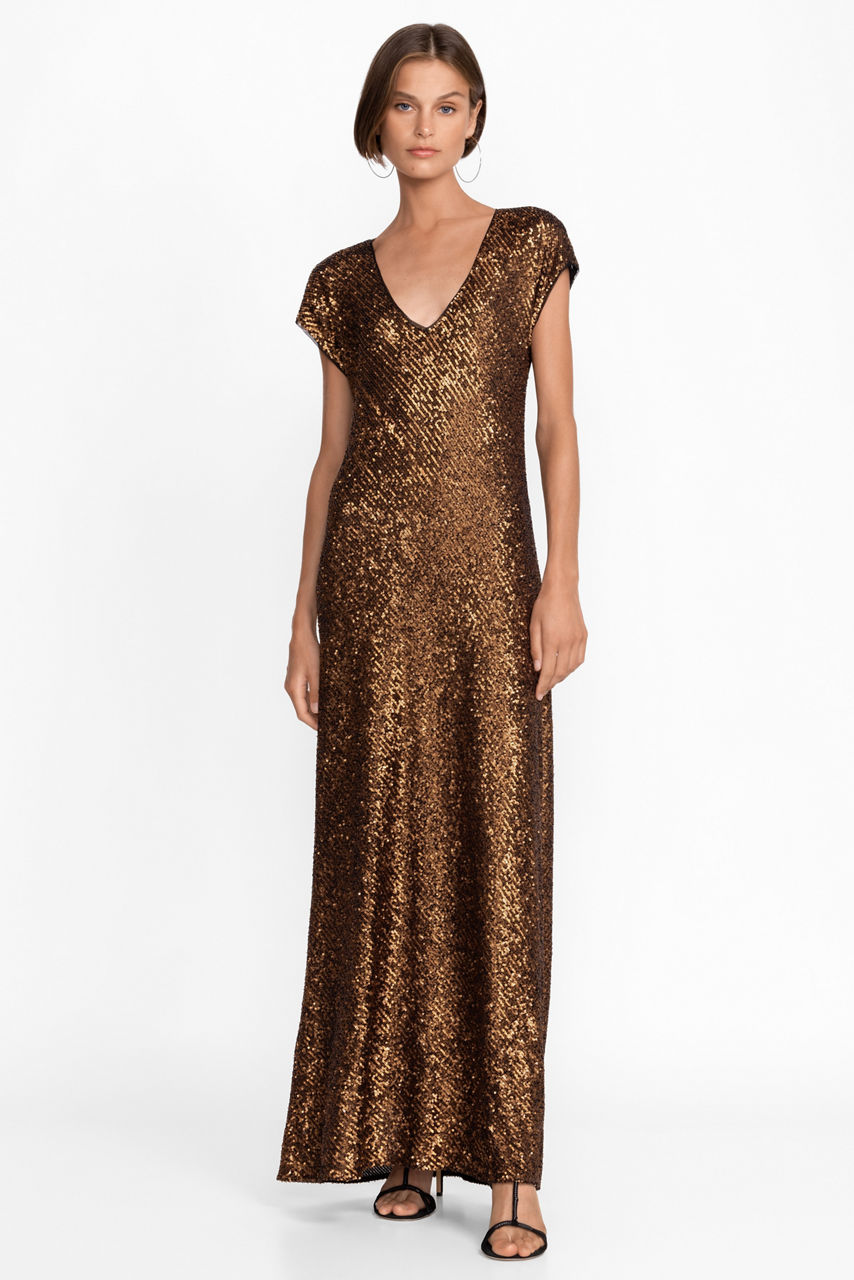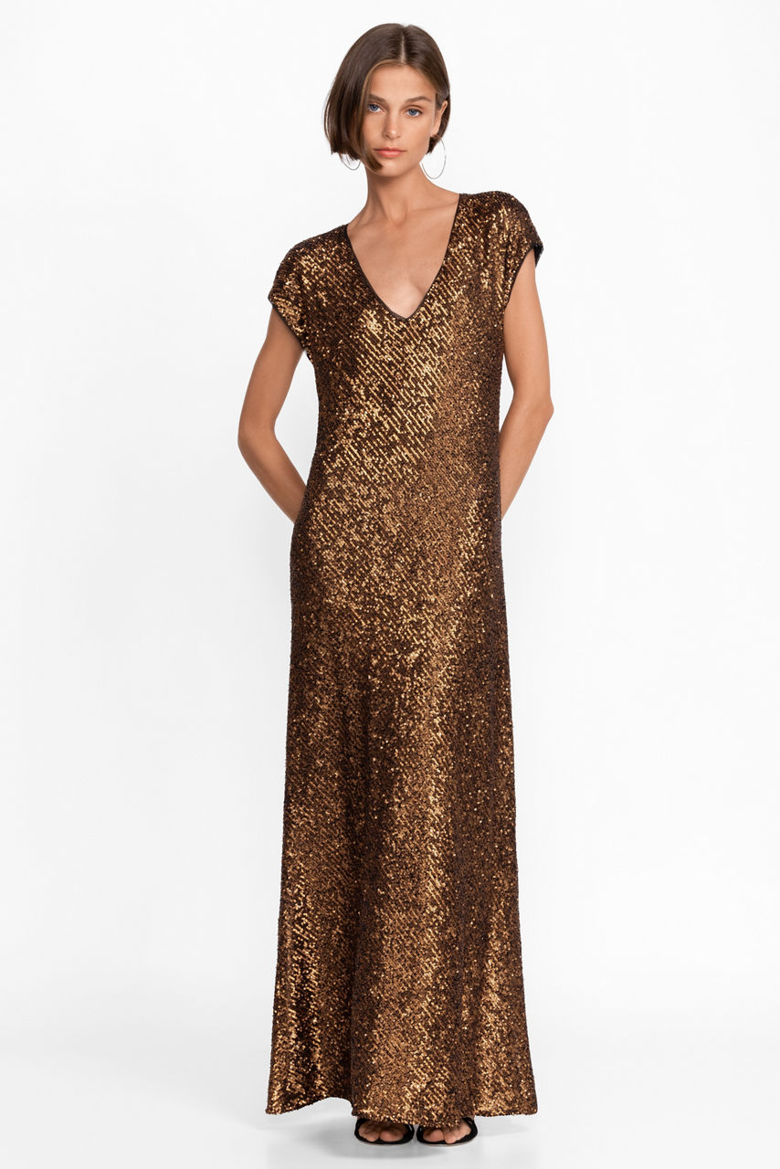Take your new season wardrobe in a glamorous direction with the Toto Sequin Maxi Dress. Falling to a maxi length, this dress is crafted from a comfortable fabric with a hint of stretch and features a flattering V-neck, short sleeves, a lining, and a dazzling sequin embellishment for a chic finish. Style this dress with a clutch and simple sandals for an elegant occasion ensemble.