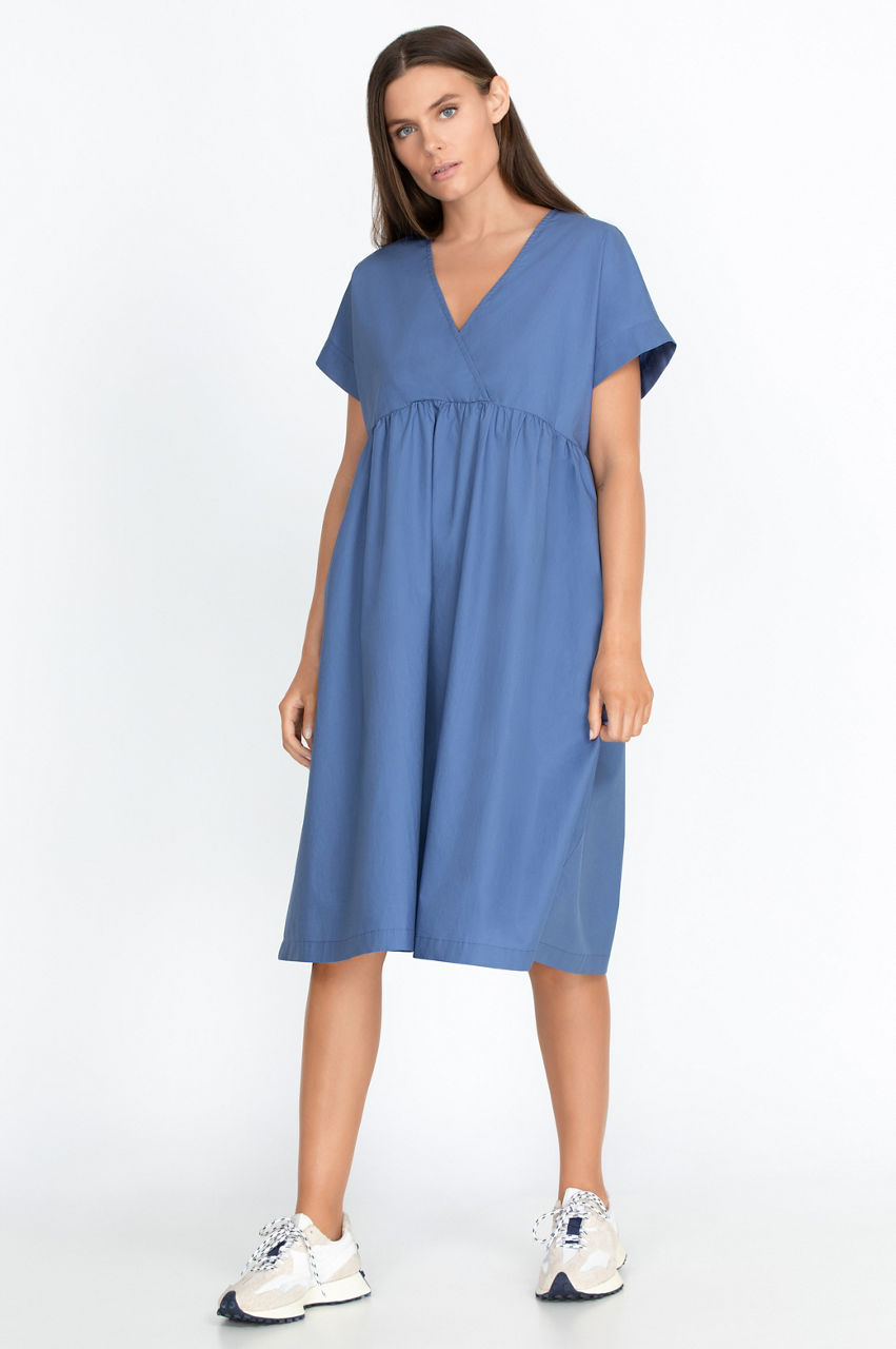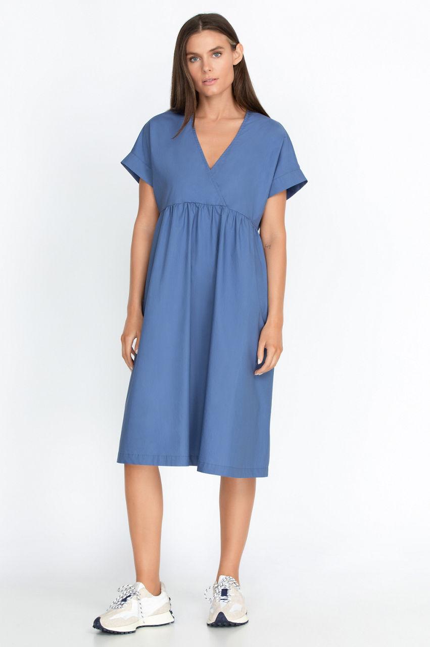 Our V-neck Dolman Dress has a laid back charm and is crafted from 100% Cotton. It features a beautiful cross over V-neck, hidden front pockets and dolman sleeves. Wear this dress solo or layer over skinny jeans or leggings with a cardigan sweater to keep you warm in the colder days ahead.