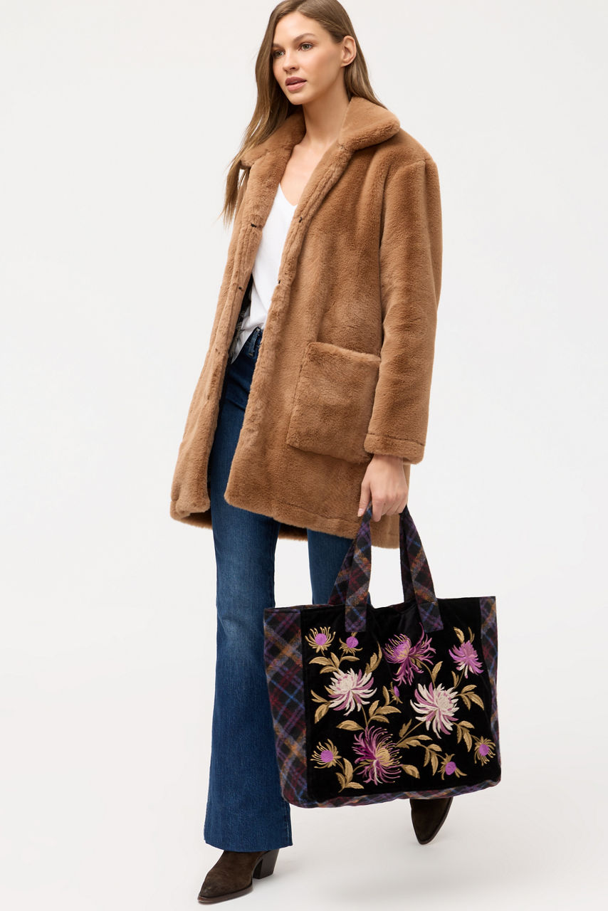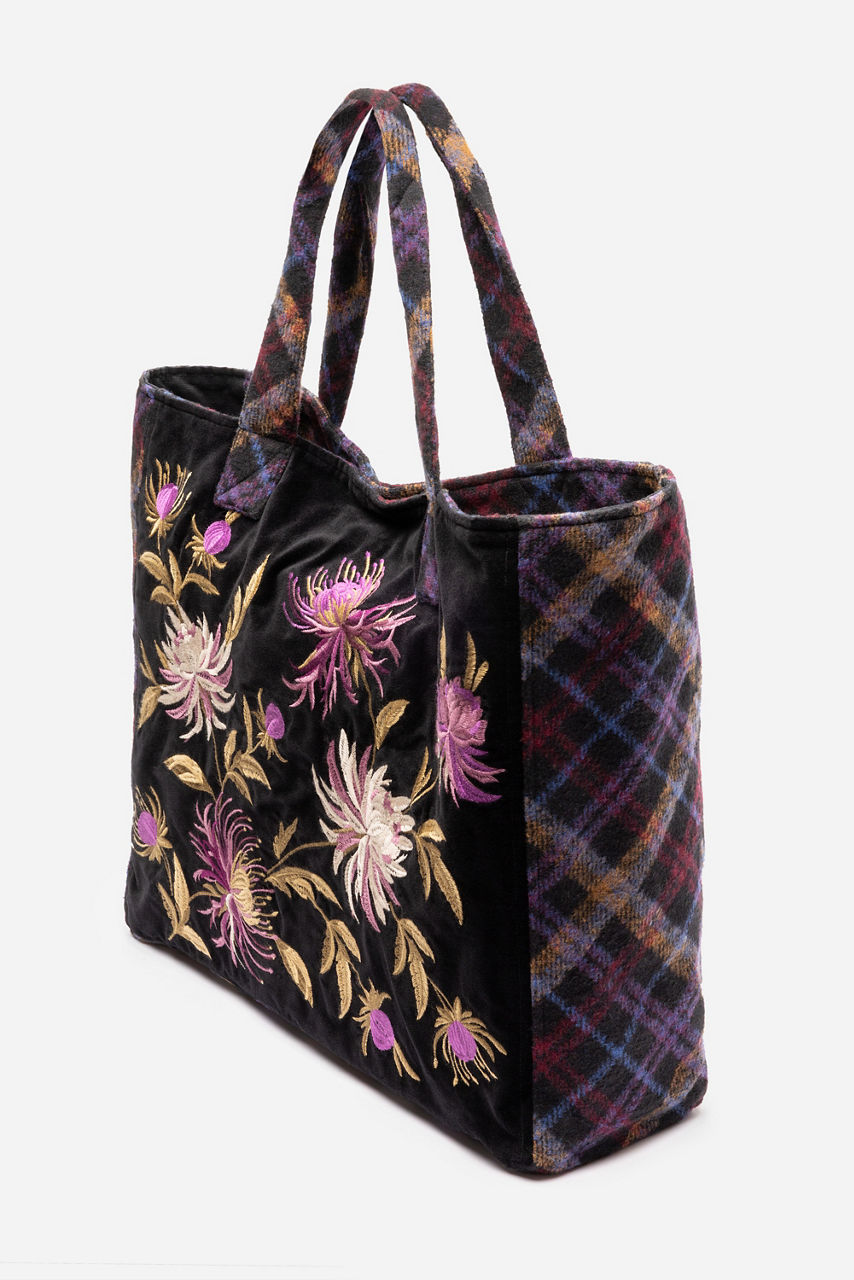 Adorned with a bold mix of patterns and textures, the Valderie Oversized Tote is equal parts practical and whimsical. Designed with a magnetic top closure and top handles, this bag features an interior zip pocket and is embellished with velvety florals and rich plaid. Carry it as a daily tote packed with all of the essentials you need for a smooth day.
