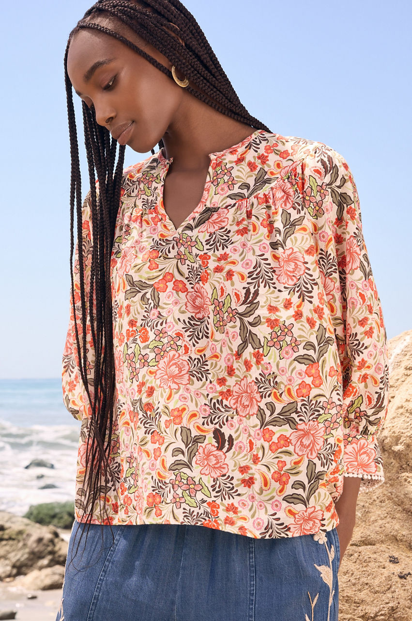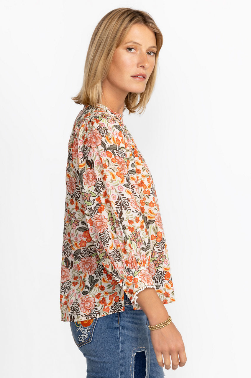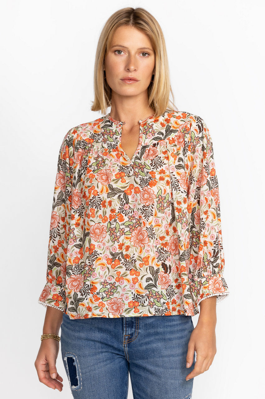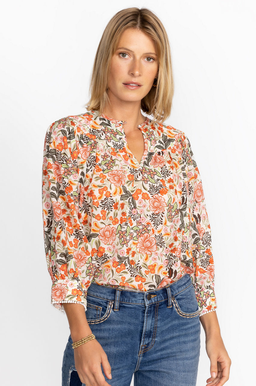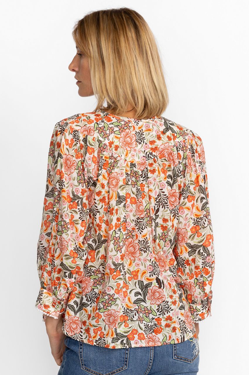 Understated with a hint of feminine charm, the Valencia Circle Yoke Blouse is an easy wardrobe choice. Crafted from 100% cotton, this blouse features a rounded neckline and gently puffed sleeves finished with a tailored cuff. Pair this blouse with a classic denim skirt and sandals to make this top the center of attention.