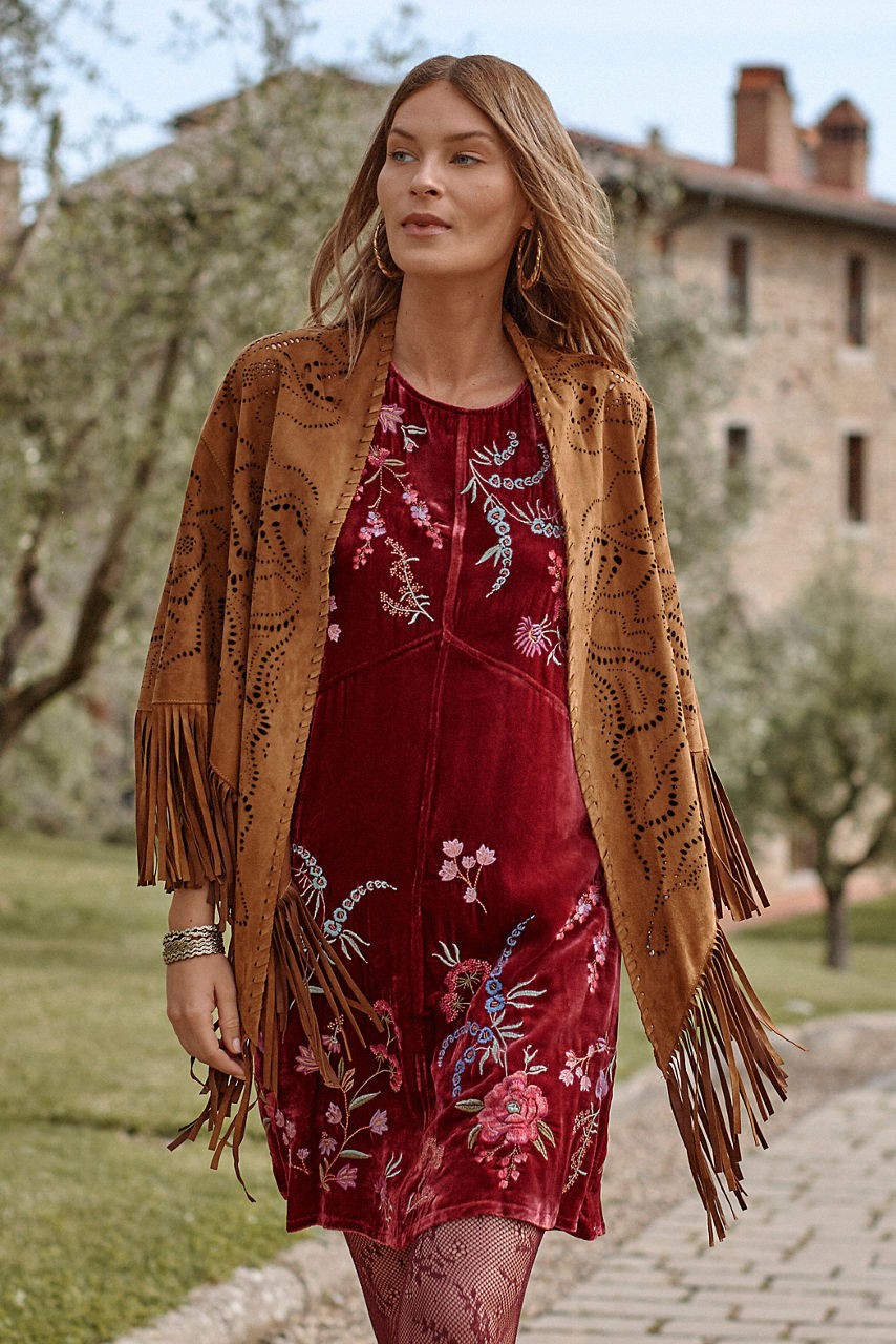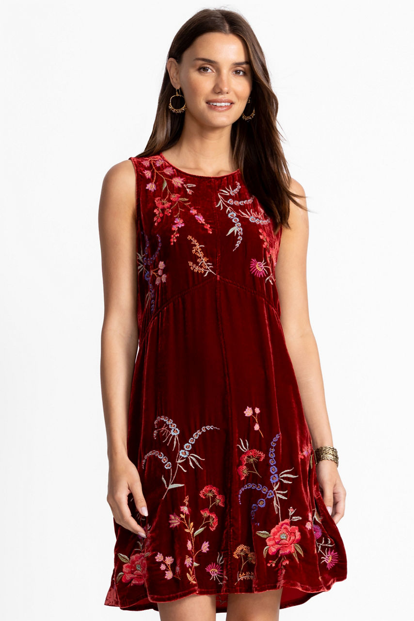 Beautifully crafted from a rich silk blend velvet, the Velvet Chevron Tank Dress is embellished with vibrant floral embroidery. Featuring a rounded neckline and detailed seaming, this vibrant dress is finished with a keyhole detail at the back. Pair with a coordinating cardigan and colorful flats for a polished casual look.