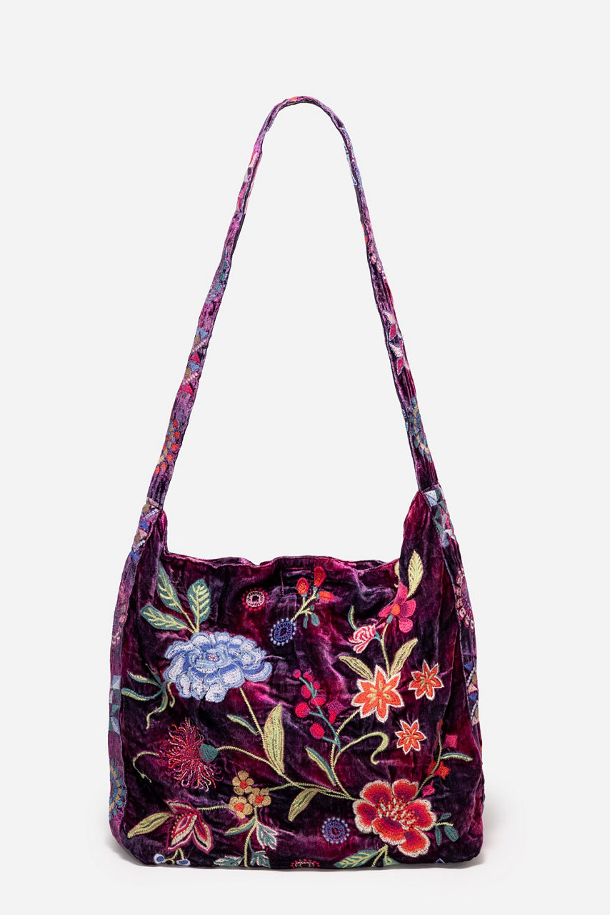 Crafted from a sumptuous, silk-blend velvet, the Velvet Wide Strap Tote Bag is the perfect statement bag for every day. Featuring a comfortable wide shoulder strap and an open top with magnetic snap closure, this colorful bag is finished with intricately embroidered detailing. Carry as your everyday tote paired with all of your favorite casual looks.