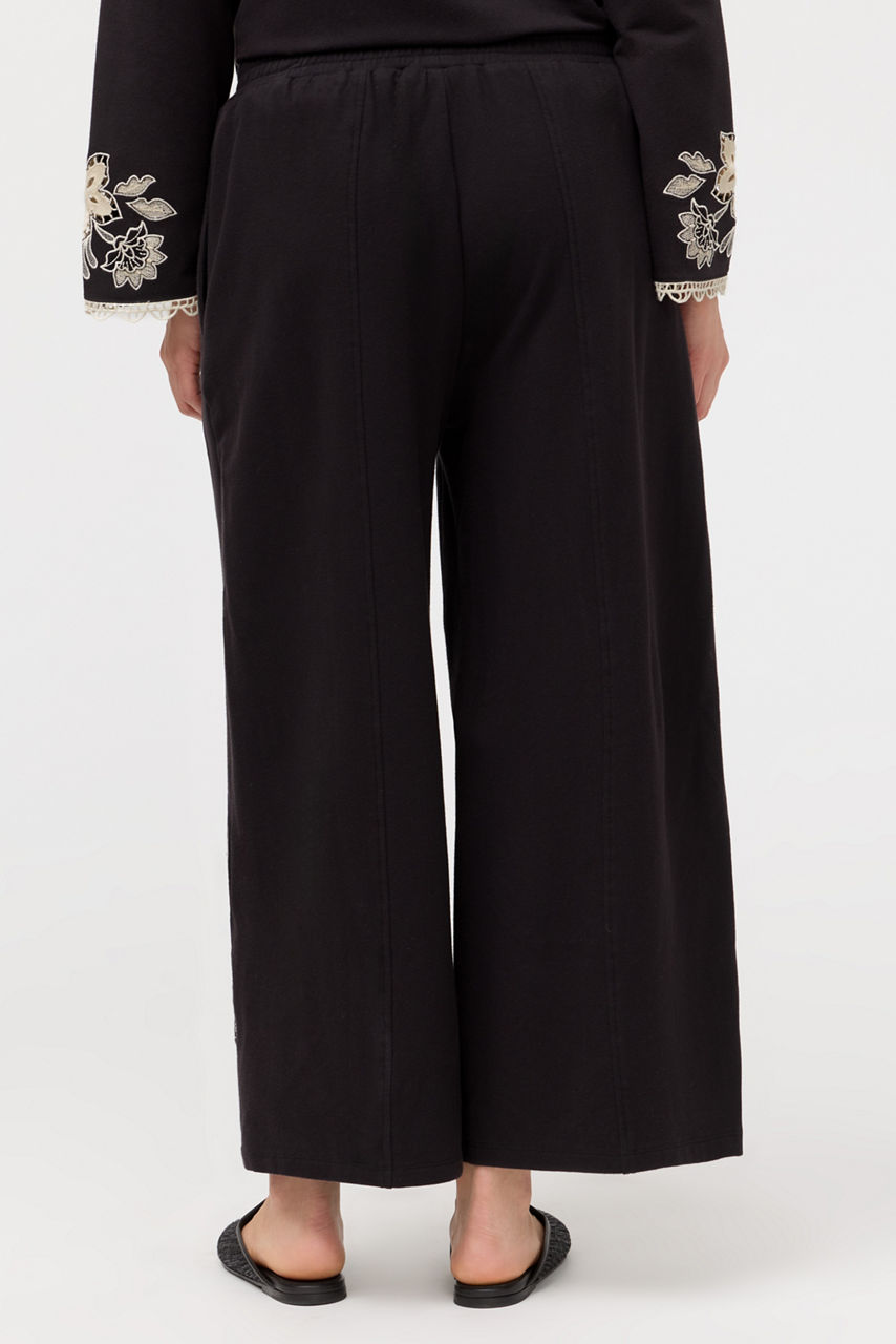 Crafted from a breathable cotton blend with a hint of stretch, the Lucci Venlda Cropped Wide Leg Pants create an effortless casual look. Designed with an elastic waist and cropped wide legs, these distinctive pants feature intricate embroidered detailing at the hemline and are finished with on-seam pockets. Pair with a silk cami and a relaxed cardigan for a timeless look.