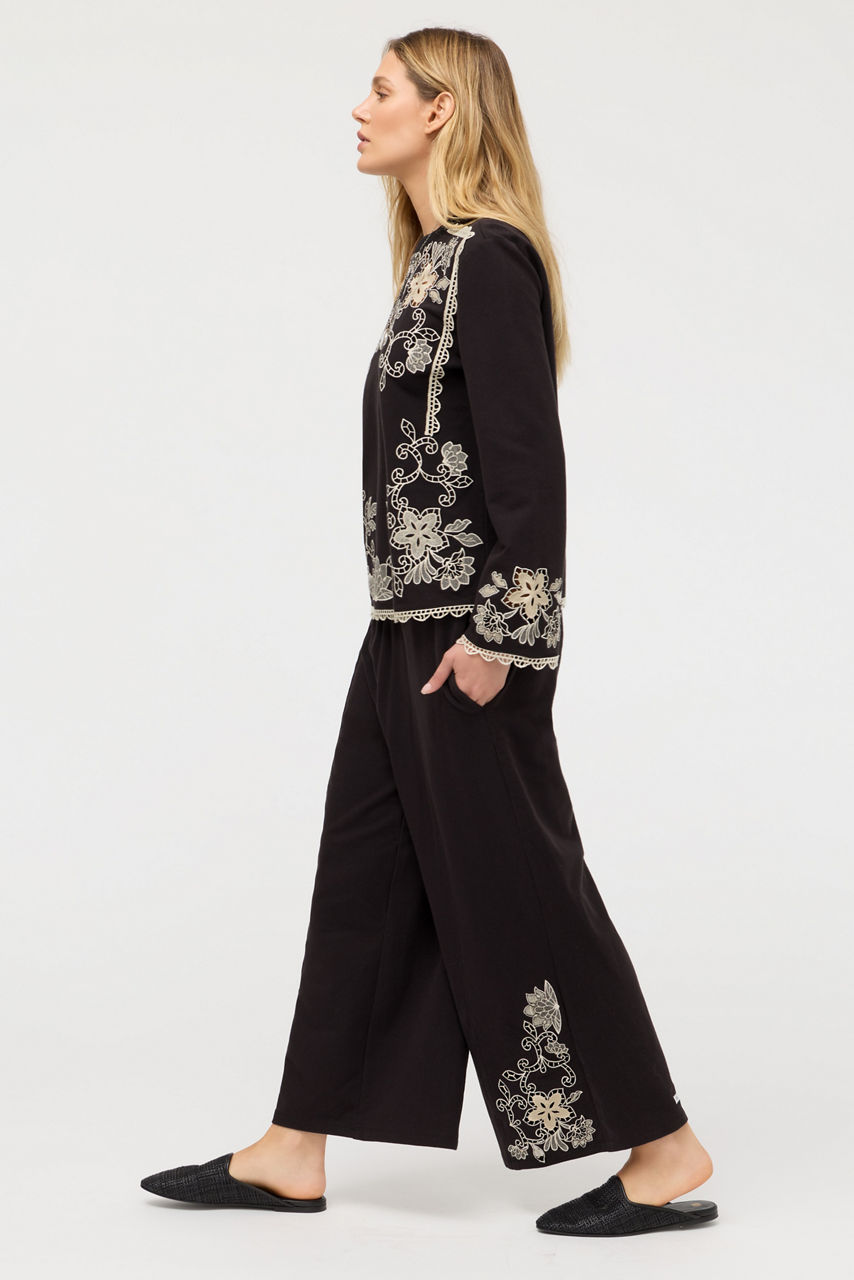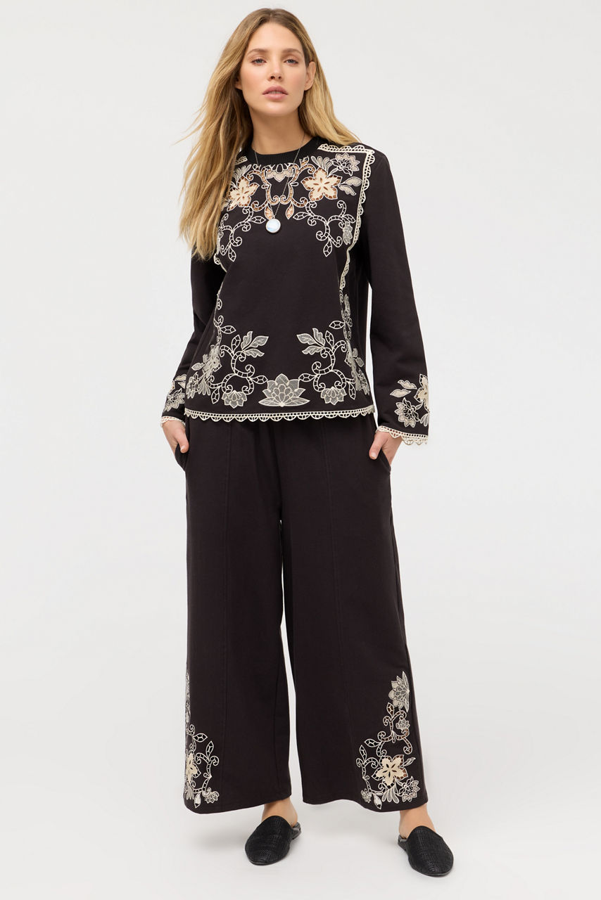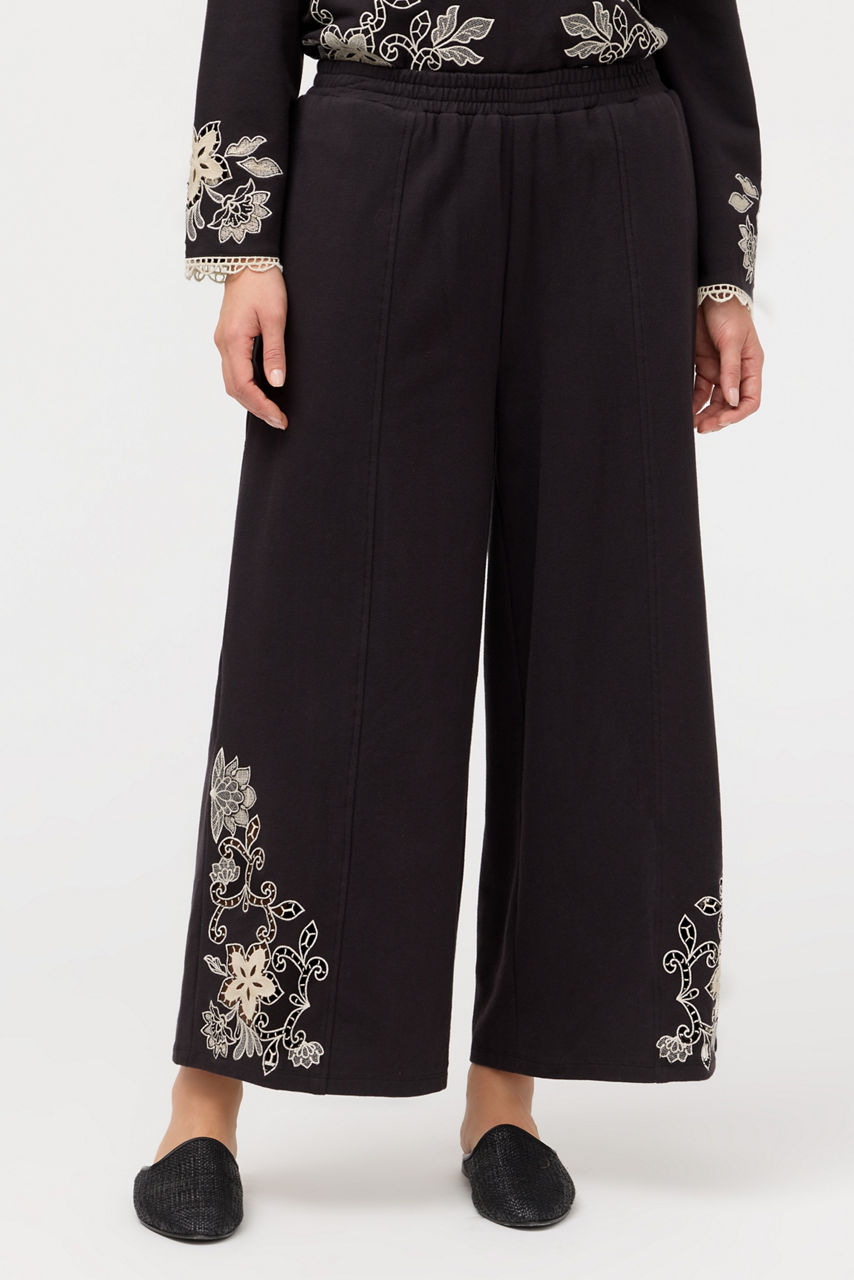 Crafted from a breathable cotton blend with a hint of stretch, the Lucci Venlda Cropped Wide Leg Pants create an effortless casual look. Designed with an elastic waist and cropped wide legs, these distinctive pants feature intricate embroidered detailing at the hemline and are finished with on-seam pockets. Pair with a silk cami and a relaxed cardigan for a timeless look.