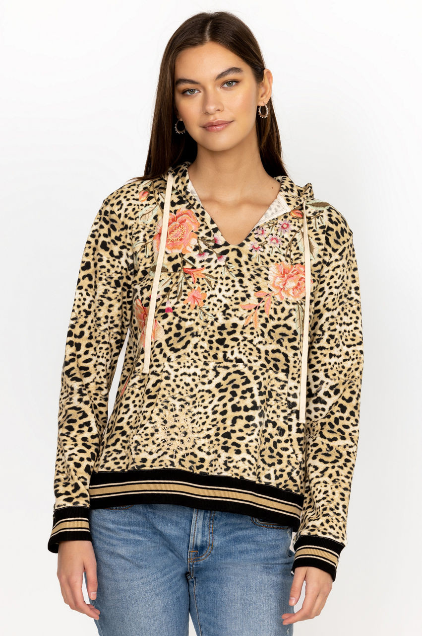 A fashion-forward approach to leisurewear, the Vienna Pullover Sweatshirt is an eye-catching choice for off-duty days and travel. This sweatshirt is crafted from breathable cotton and features a drawstring hood, a practical kangaroo pocket, and a placement embroidery comprising flourishing blooms and a childlike sun motif. Team with matching joggers for a coordinated weekend ensemble.