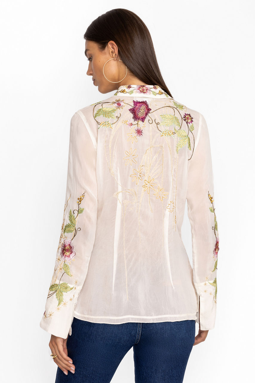 Capturing the essence of vintage fashion, the Priscillia Vintage Button Down is a stylish and versatile piece. Made from 100% rayon, this shirt features intricate embroidery and a classic button-down front, making it suitable for a variety of occasions. The comfortable fit and elegant design make it a staple in any wardrobe.