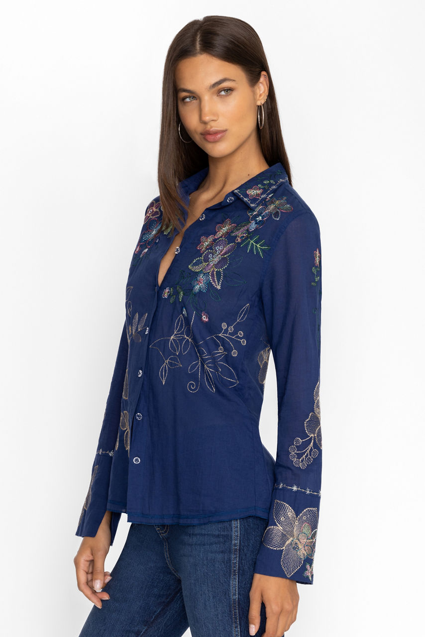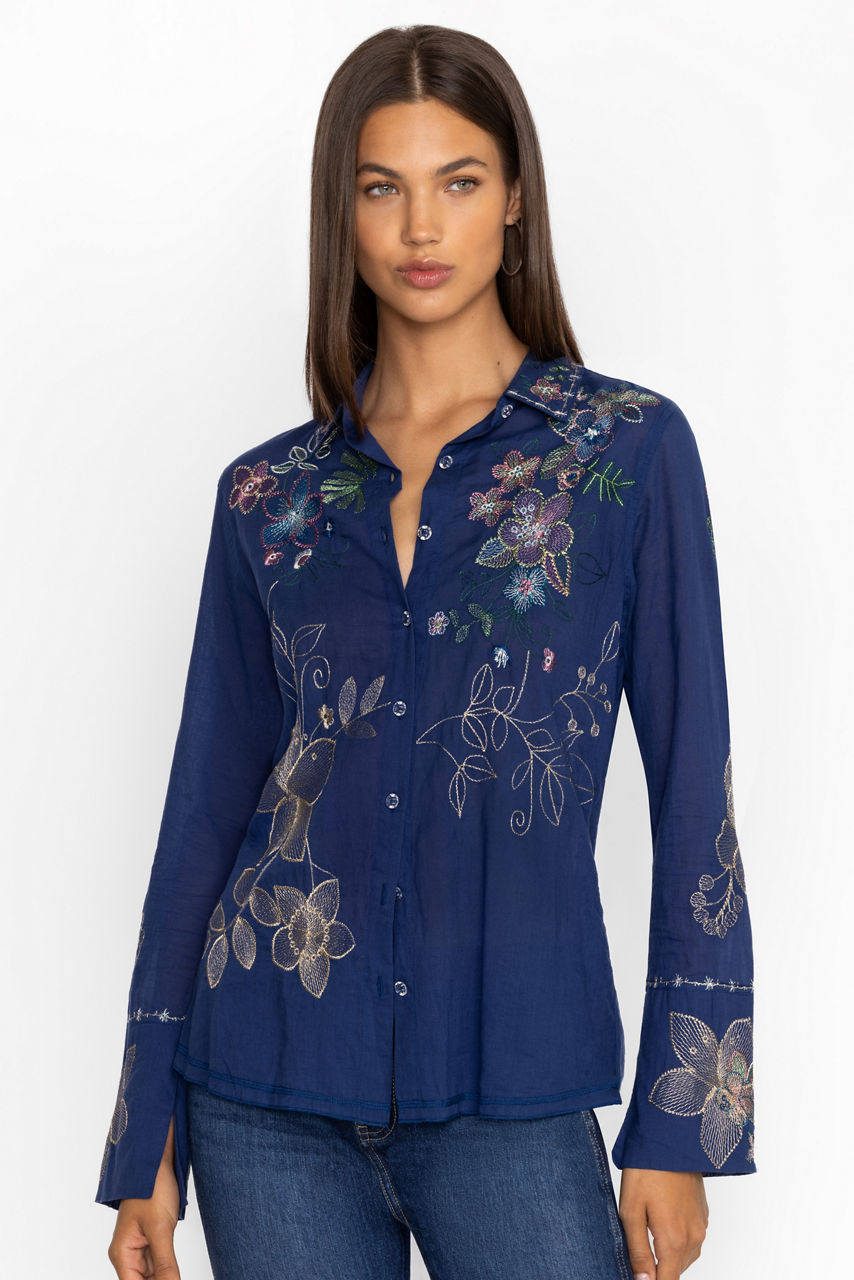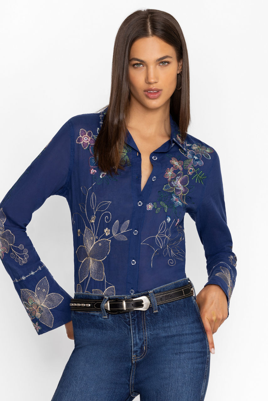 Offering a blend of classic style and modern comfort, the Abby Vintage Button Down is a must-have piece. Crafted from 100% cotton, this top features delicate embroidery and a button-down design that adds a refined touch to your everyday look. Perfect for layering or wearing on its own, it's a versatile addition to any wardrobe.