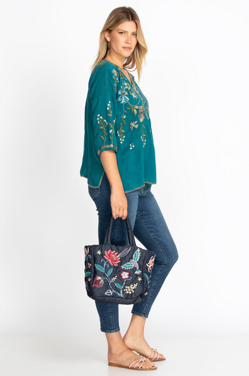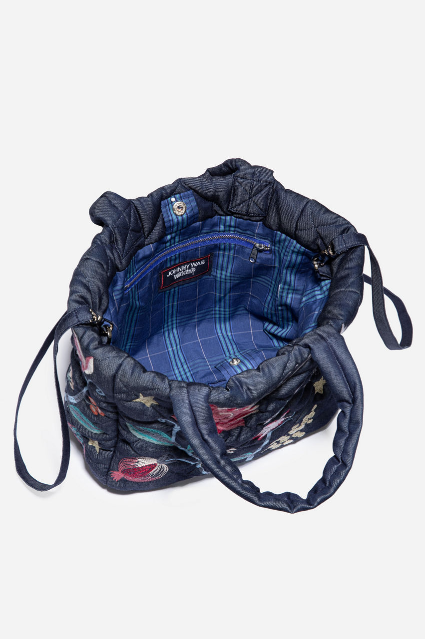 Our gorgeous everyday Viola Denim Quilted Tote bag is a true inspiration for boho style. Matching well with an array of styles, its versatile size and chic design makes it perfect for day trips or weekend getaways. This quilted tote bag collection is made of durable lyocell, strong enough to support your accessories with ease.