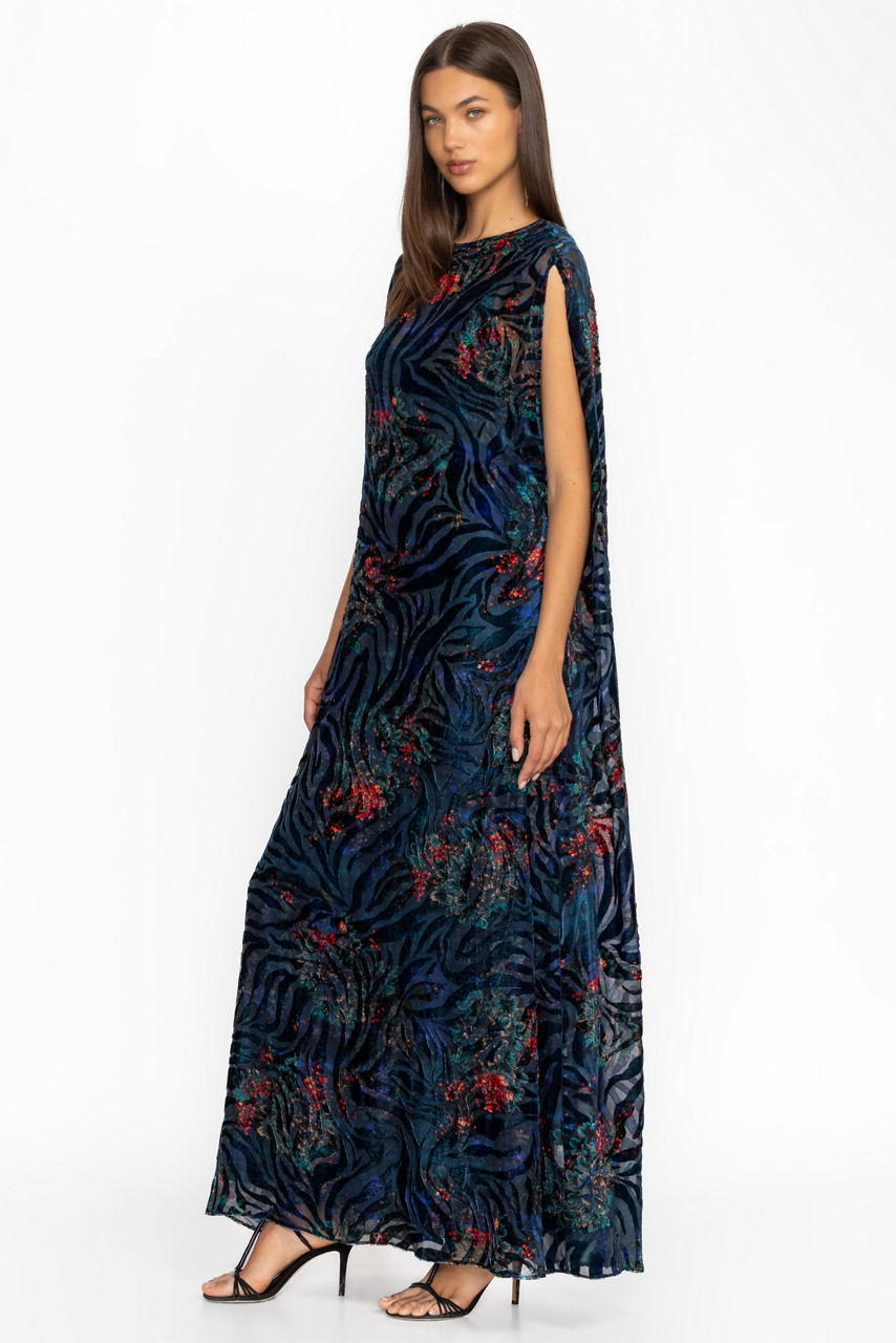 Elegantly crafted from a unique silk blend, the Viva Burnout Dress is adorned with a blend of floral blooms in a rich color palette. Featuring a boat neckline with a zipper at the back, this sleeveless, slip-lined dress is embellished with a sparkling rhinestone trim. Pair with classic heels and a glittering clutch for a night out.