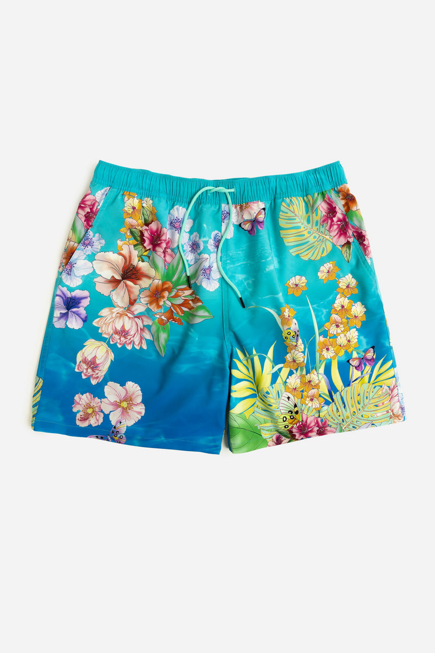 Glistening oceans and sandy shores form the perfect backdrop for the Water Tropic Men's Swim Trunks. Infused with a dose of tropical panache, these swim trunks are crafted from a quick-drying material with an inside brief for lasting comfort. Finished with an elastic drawcord waist and an exotic mix of blooms, these trunks are the perfect pick for vacations and poolside lounging.