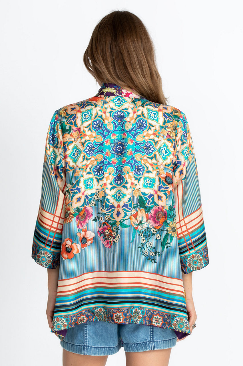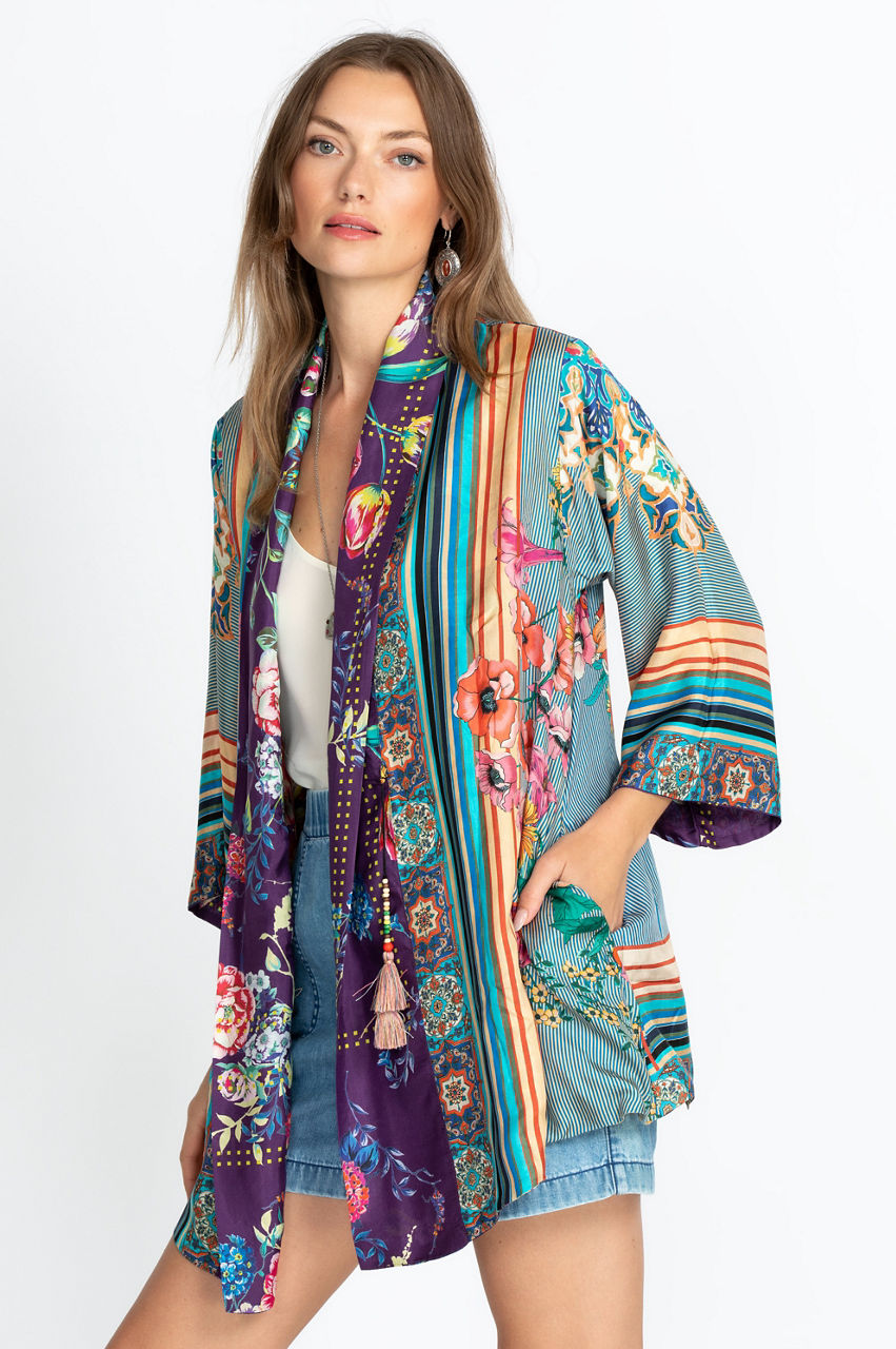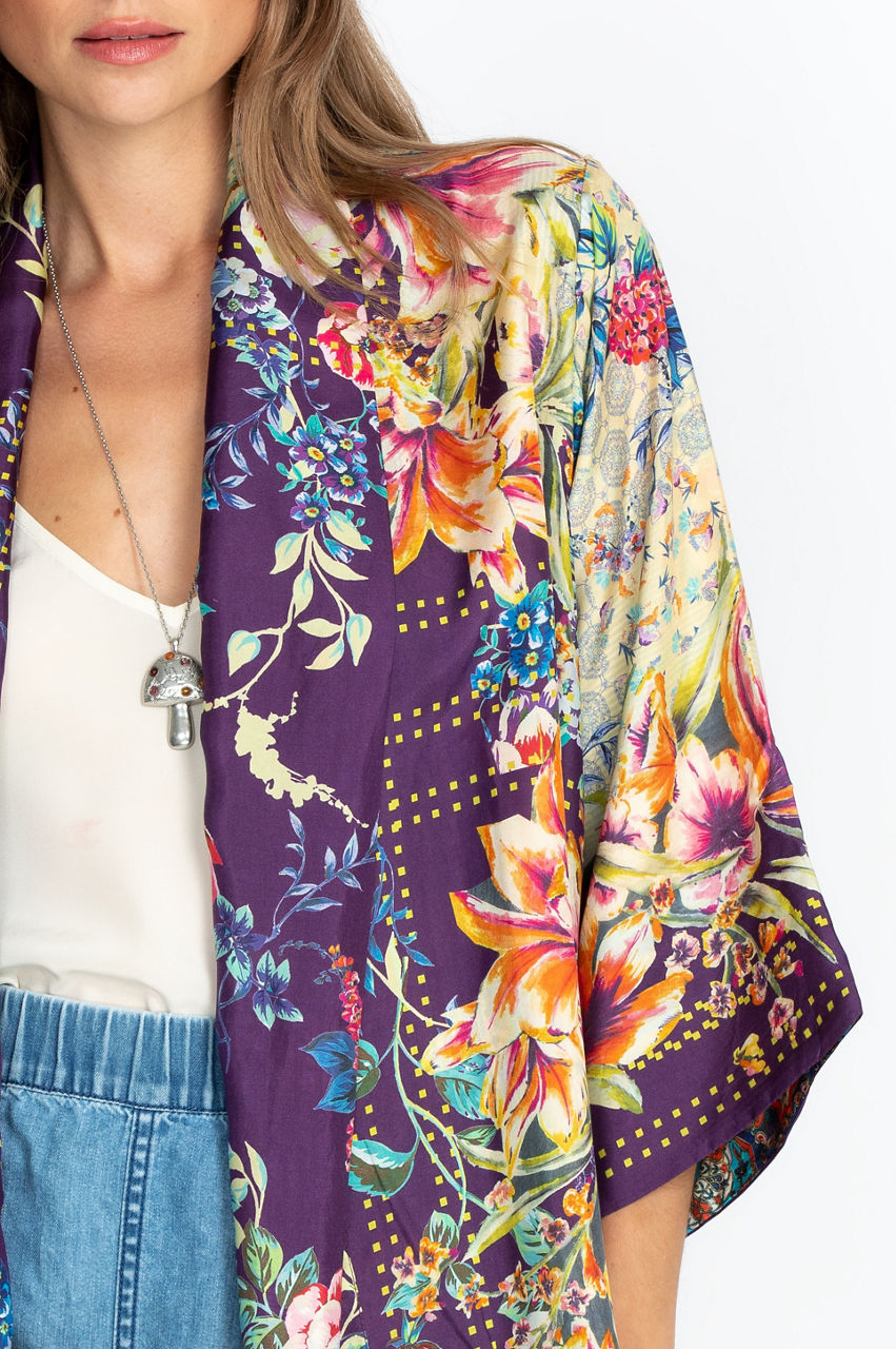 Vibrant and versatile, our Topiary Hunter Kimono is a staple for a sophisticated, boho-chic look. Featuring a tie front, this soft, silky kimono is lightweight and reversible, allowing endless styling possibilities. Pair with jeans, a silk blouse and heels for a date
