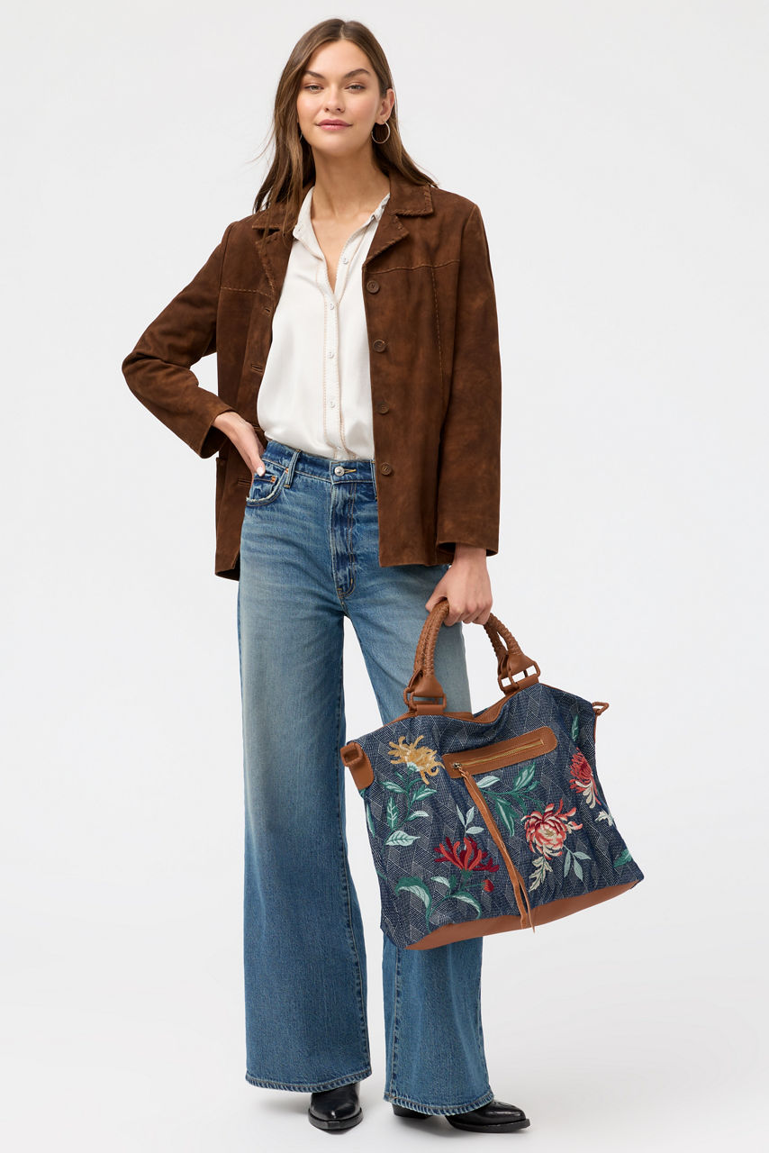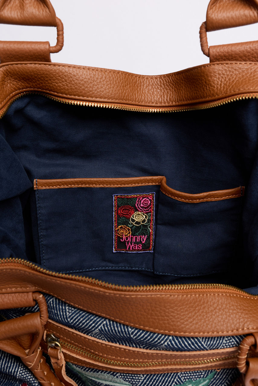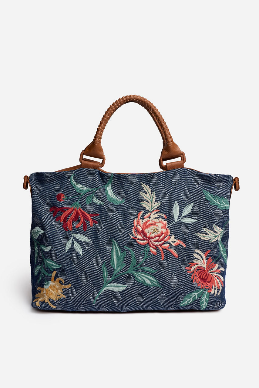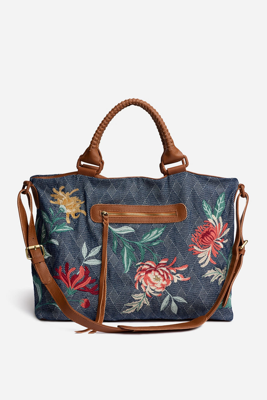 Crafted from rich 100% cotton, the Weslie Overnight Bag is beautifully embellished with a mesmerizing floral pattern featuring vibrant color. Designed with top handles and a long shoulder strap, this statement bag is finished with an exterior zippered pocket. Fill with all of your essentials and arrive in style for an overnight trip.