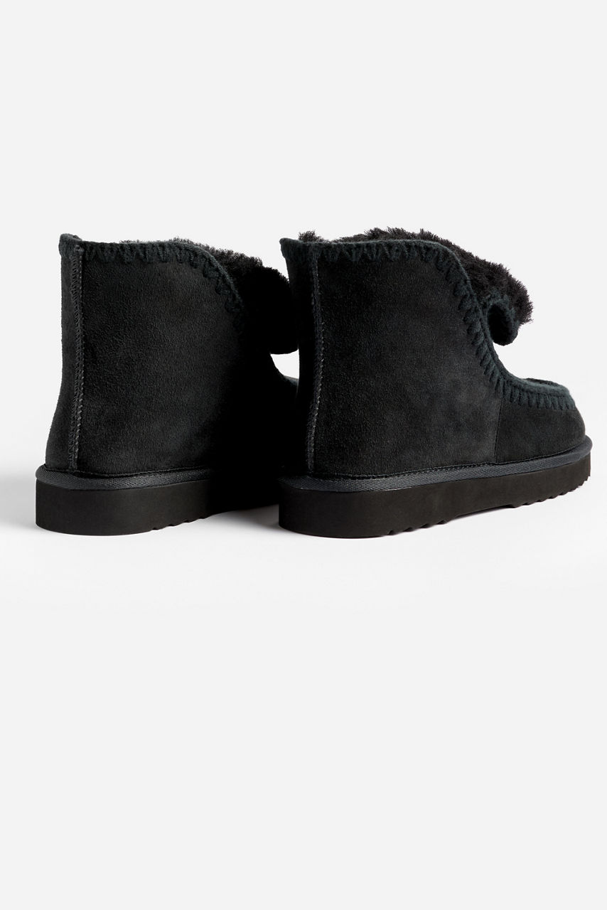 Crafted from 100% rich suede, the Whipstitch Booties are equal parts cozy and stylish. Designed with a thick sole and fleece interior, these pull-on booties are embellished with an intricate whipstitch detail along the seams. Pair with flared leggings and a comfortable pullover for a perfect lounge look.