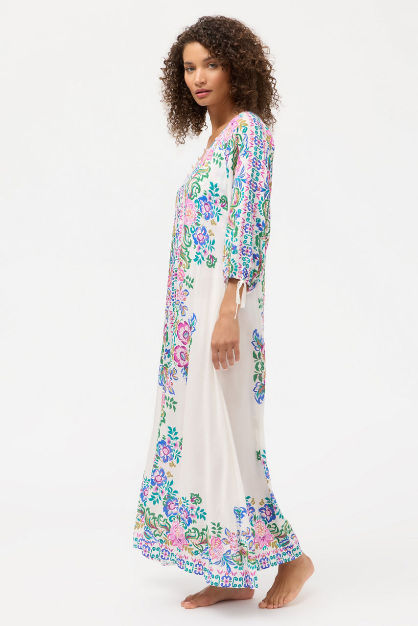 The Long Dress offers an elegant, effortless silhouette detailed with vibrant botanical prints that bring a touch of resort luxury to any sunny escape. Designed with delicate button accents, adjustable drawcord sleeves, and a breezy drape, it moves beautifully from beach to boardwalk. Lightweight and graceful, it s the perfect layer for polished, relaxed warm-weather style.
