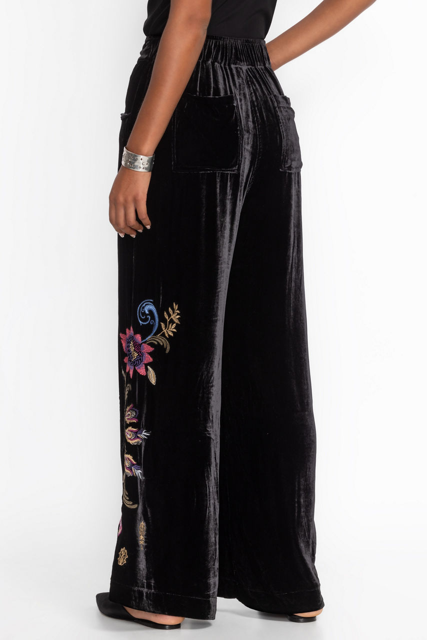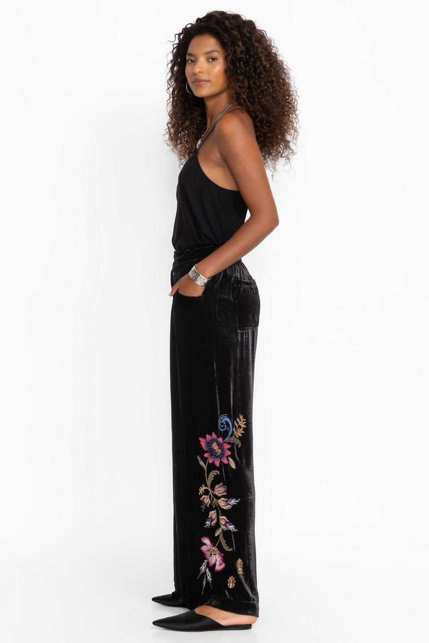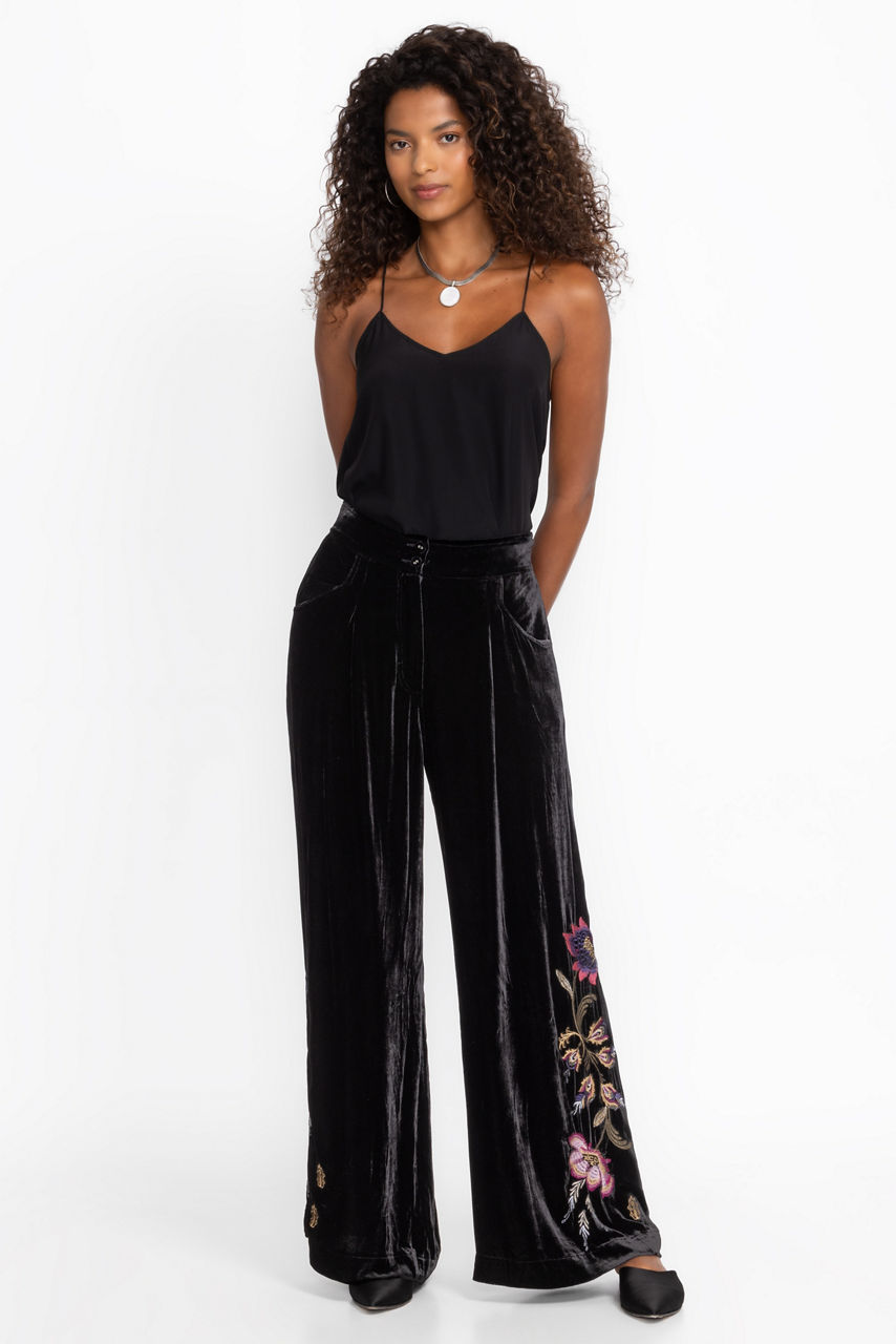 Beautifully embroidered with floral detailing, the Steffania Wide Leg Pleat Pants are crafted from a luxurious silk blend. Featuring a half elasticized waist and pleated detailing at the front, these wide-leg pants are finished with pockets at the front and back. Pair with a bold silk button-down for a polished night out.