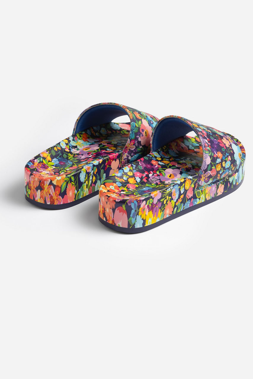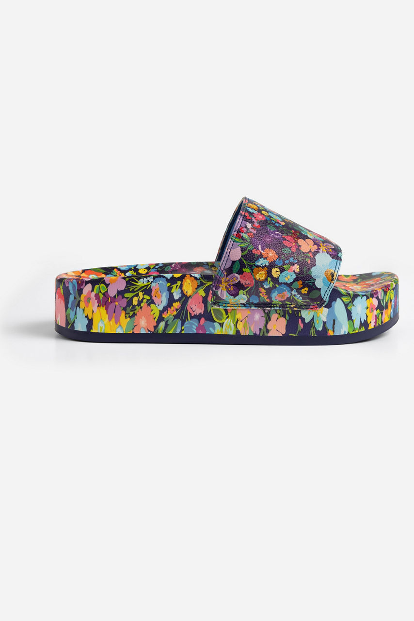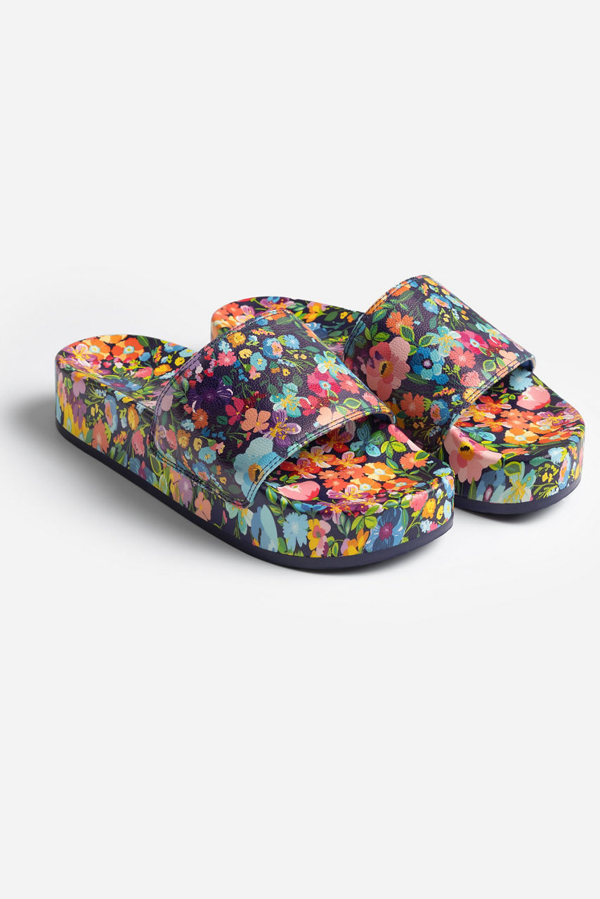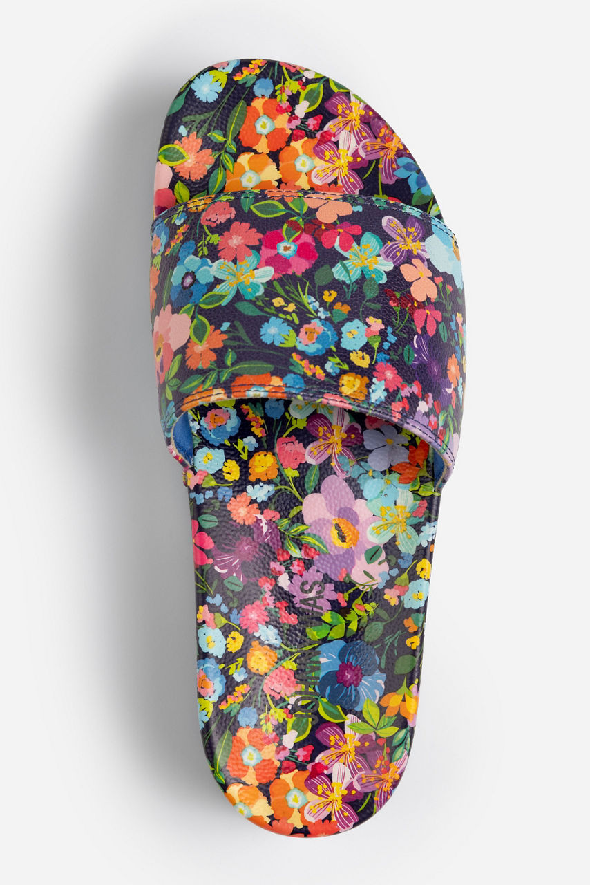 Adorned with rich floral blooms on an inky backdrop, the Wild Bloom Pool Slides add a splash of personality to any poolside look. Crafted from a lightweight material, these bold slides feature a wide strap across the top and a molded footbed for comfortable all-day wear. Pair with the Wild Bloom Ruched One Piece and a white linen button-down for a day at the beach.