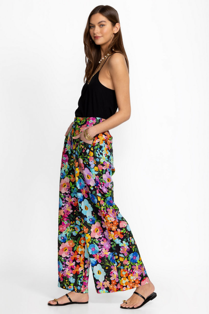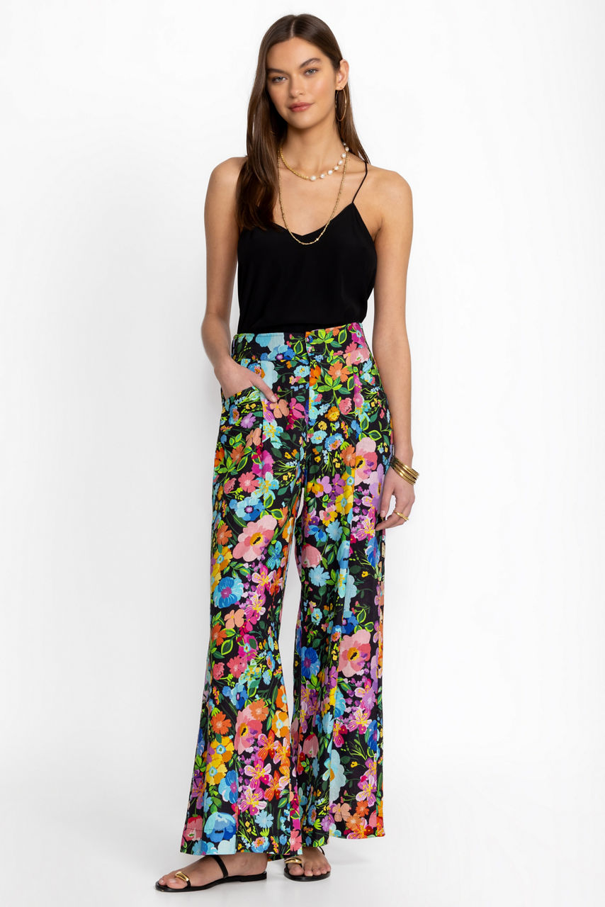 WILD BLOOM WIDE LEG PLEAT LINEN PANT