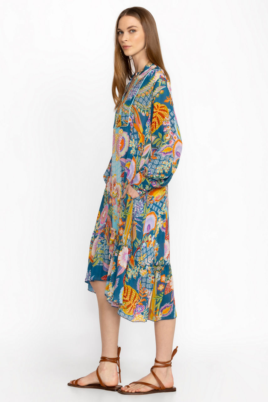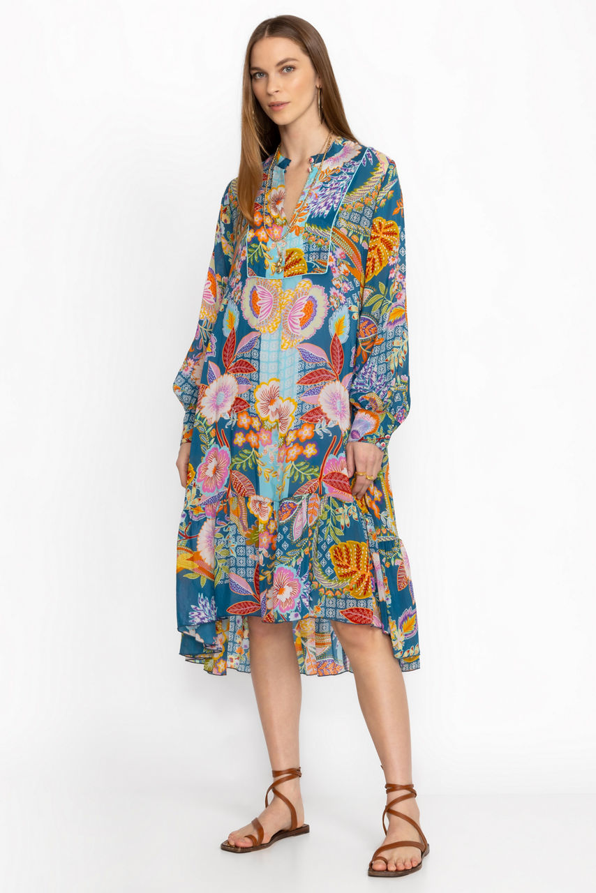 Adopting a bold color palette of fresh blooms, the Imana Dress offers a kaleidoscope of texture and pattern. Crafted from a lightweight material, this stunning dress features whimsical flower buttons, delicate shirring at the sleeves and hemline and a removable slip. Pair with bold heels and sparkling jewelry for an eye-catching look.