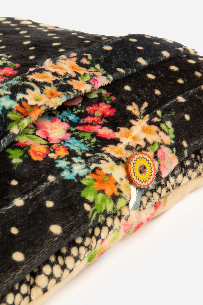 Eye-catching with timeless appeal, the Willa Travel Blanket is a chic take on a travel staple. Perfect for long haul journeys and vacations, this blanket is designed with a wooden button closure and crafted from a soft material. Finished with a dotted pattern and flourishing blooms, this blanket can also be used as an extra layer at home.