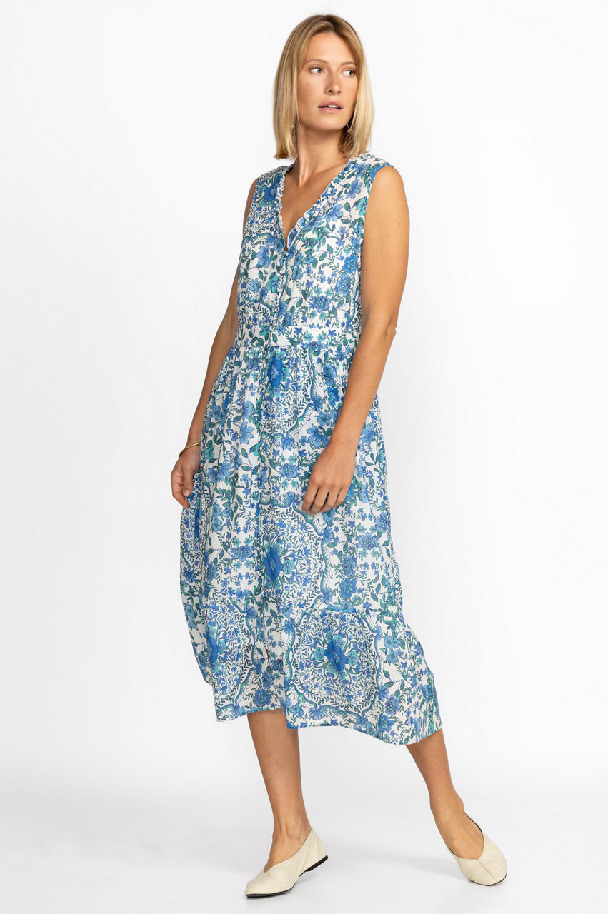 The Willow Blue Ruffled Tank Dress is a feminine style for anytime wear. Featuring chic lines and soft tones, this tank silhouette is an effortless look that can be dressed up or down according to your mood. Pair with slip-on sandals and your favorite casual bag for a perfect weekend ensemble.