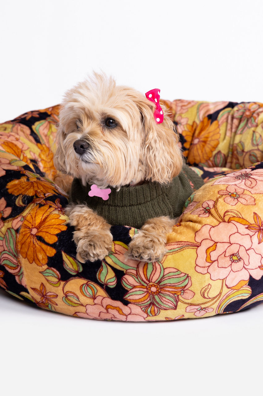 Enveloping your pet in cozy floral blooms, the Wonder Years Medium Pet Bed is a delightfully cozy experience for your furry friend. Thoughtfully covered with a durable machine washable fabric this bed is crafted in a circular shape for an additional feeling of security that your pet will appreciate. Add to any room in your home to pamper your posh pet.
