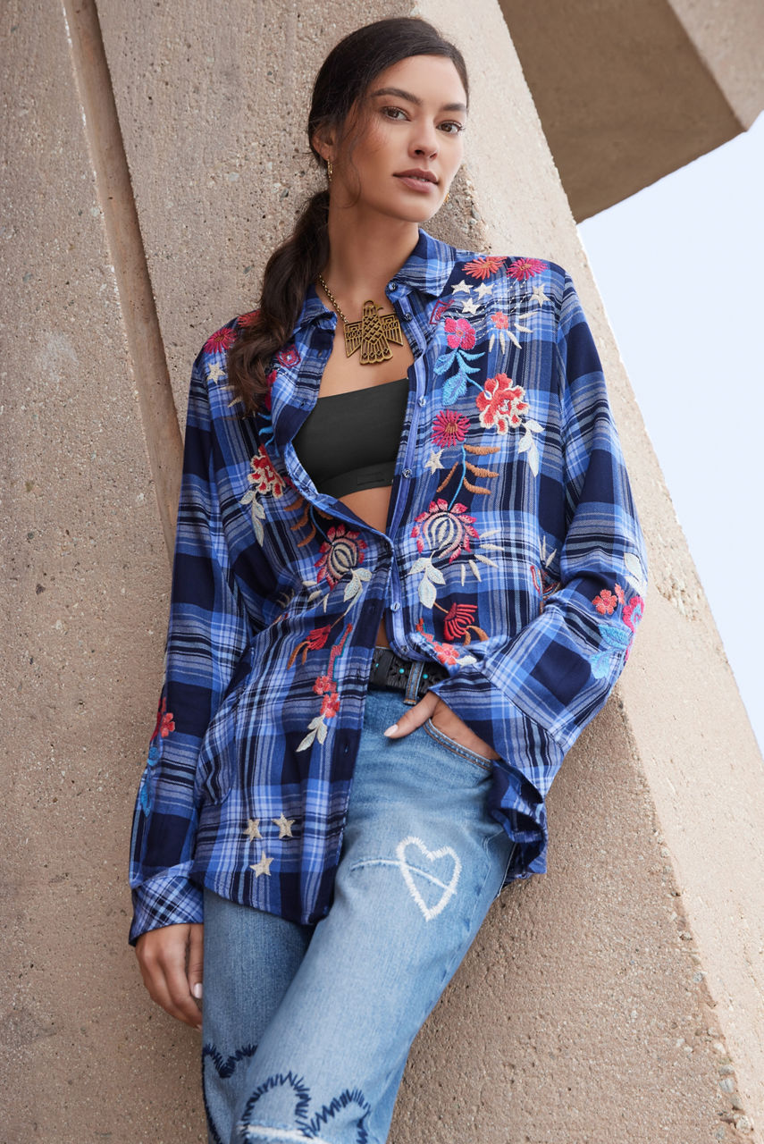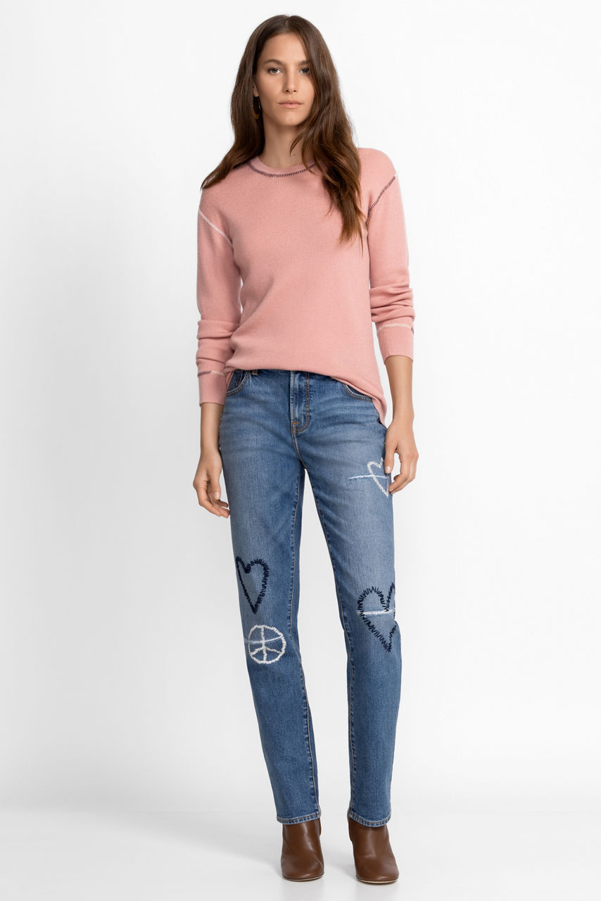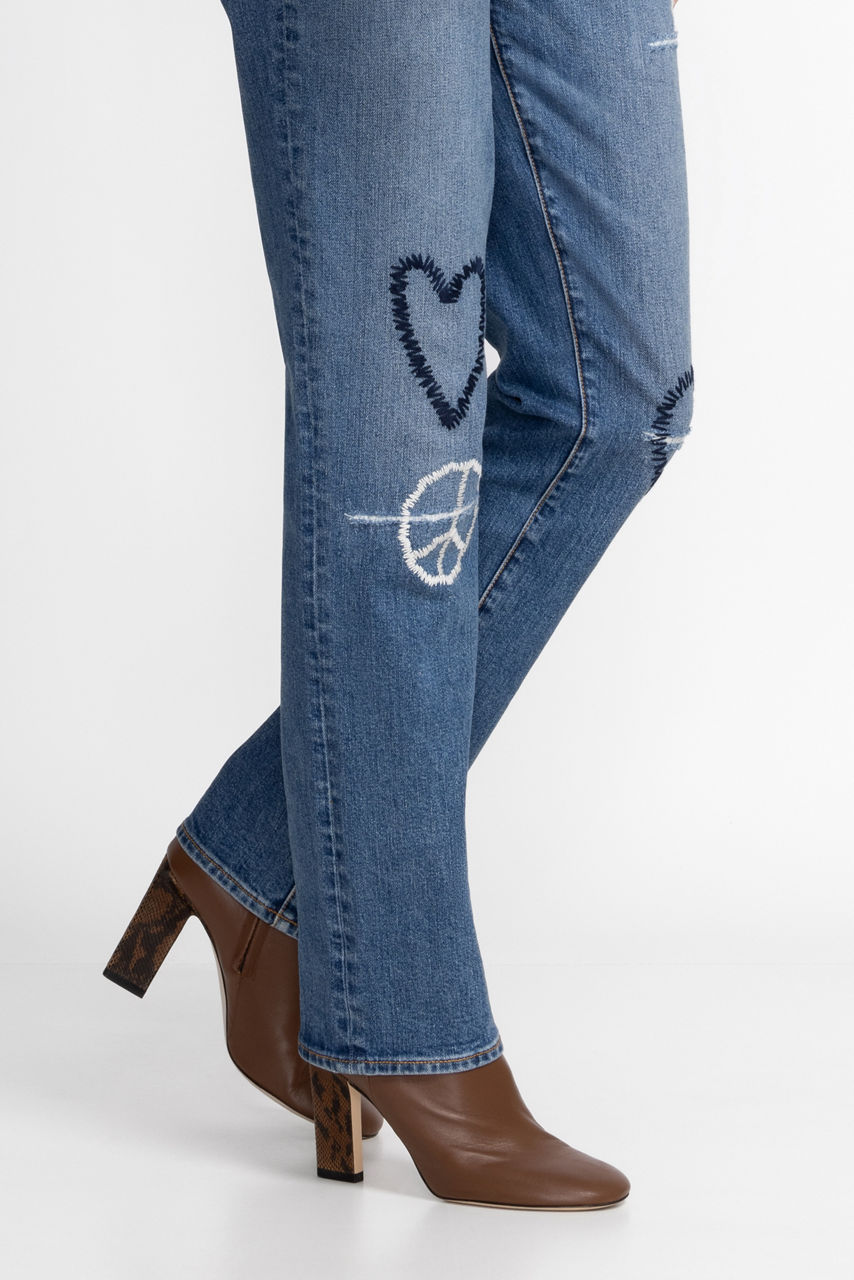 Serving up relaxed fit denim with a retro feel, the Woodstock Boyfriend Jeans are an ode to free spirits. Featuring a relaxed wide leg with and a cotton blend that offers the perfect amount of stretch, these embroidered jeans are both and comfortable and whimsical. Pair with a flowing top and fun ankle boots for a concert ready look.
