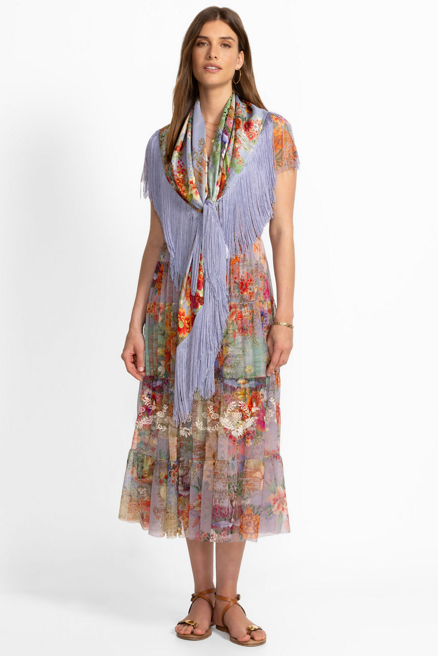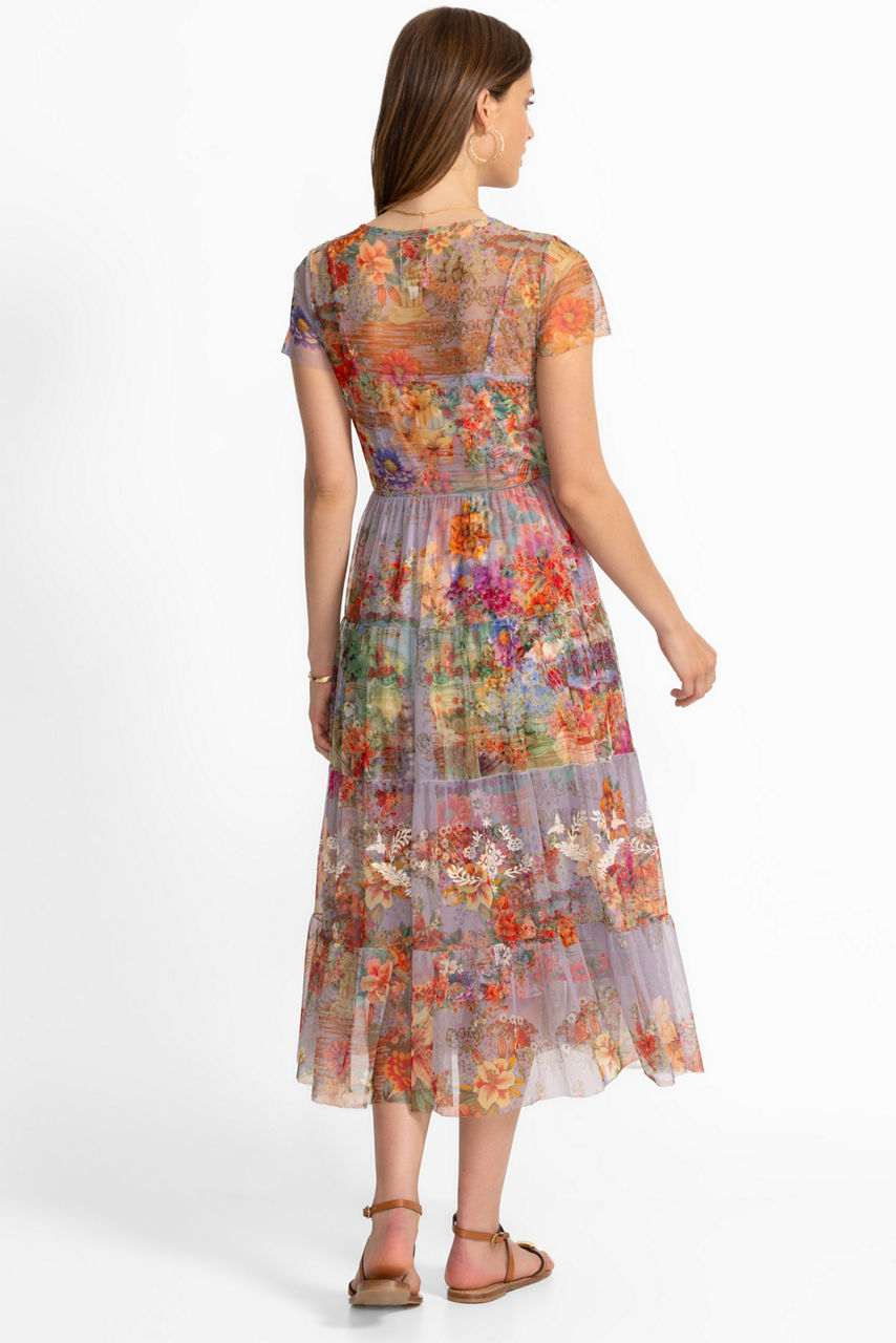 Crafted from a lightweight breathable fabric, the Yasmine Mesh Dress is embellished with a delicate floral pattern in rich muted tones. Designed with a rounded neckline and short sleeves, this slip-lined dress is finished with a tiered skirt and delicate embroidery. Pair with a crochet cardigan and kitten heels for a polished daytime style.
