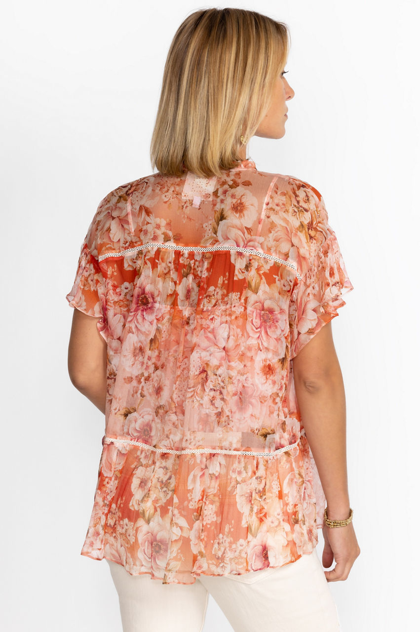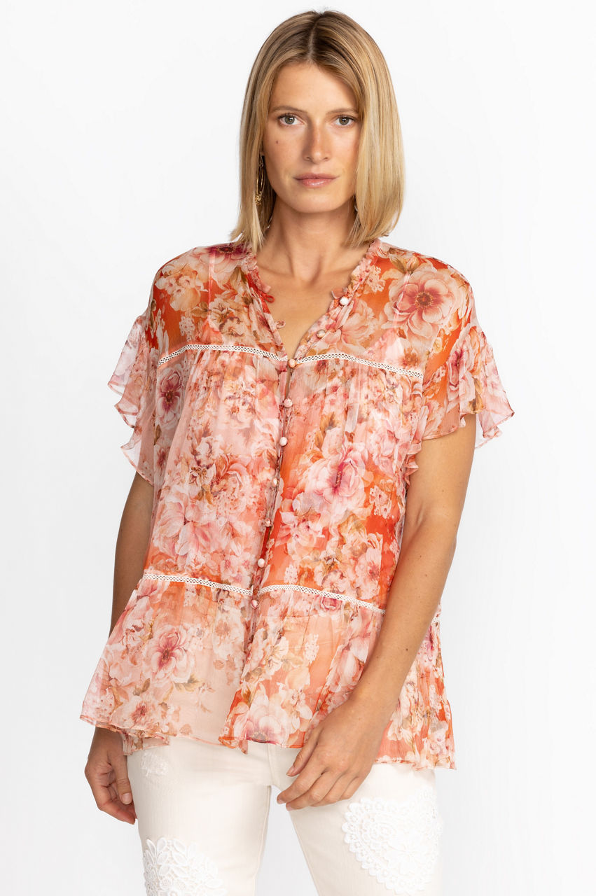 Feminine and flirty, the Yours Truly Silk Blouse is a splendid addition to your upscale wardrobe. Crafted from 100% silk, this luxurious blouse features a Nehru collar, a generous tiered bodice, and delicate ruffle details at the sleeve. Pair with fitted pants and kitten heels for a polished look for dinner out.