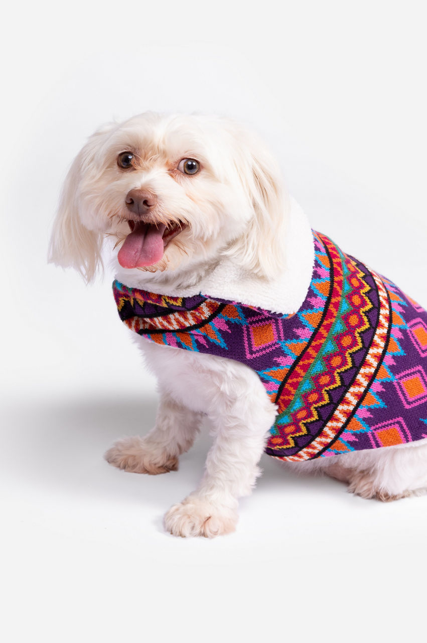 Keeping your furry friend warm on outdoor adventures, the Yuya Reversible Dog Vest is both fashionable and cozy. Crafted from 100% Alpaca and specially designed for the comfort of your dog, this unique vest offers two fun fashionable options. Consider matching with your four-legged sidekick in the Yuya Sherpa Reversible Vest.