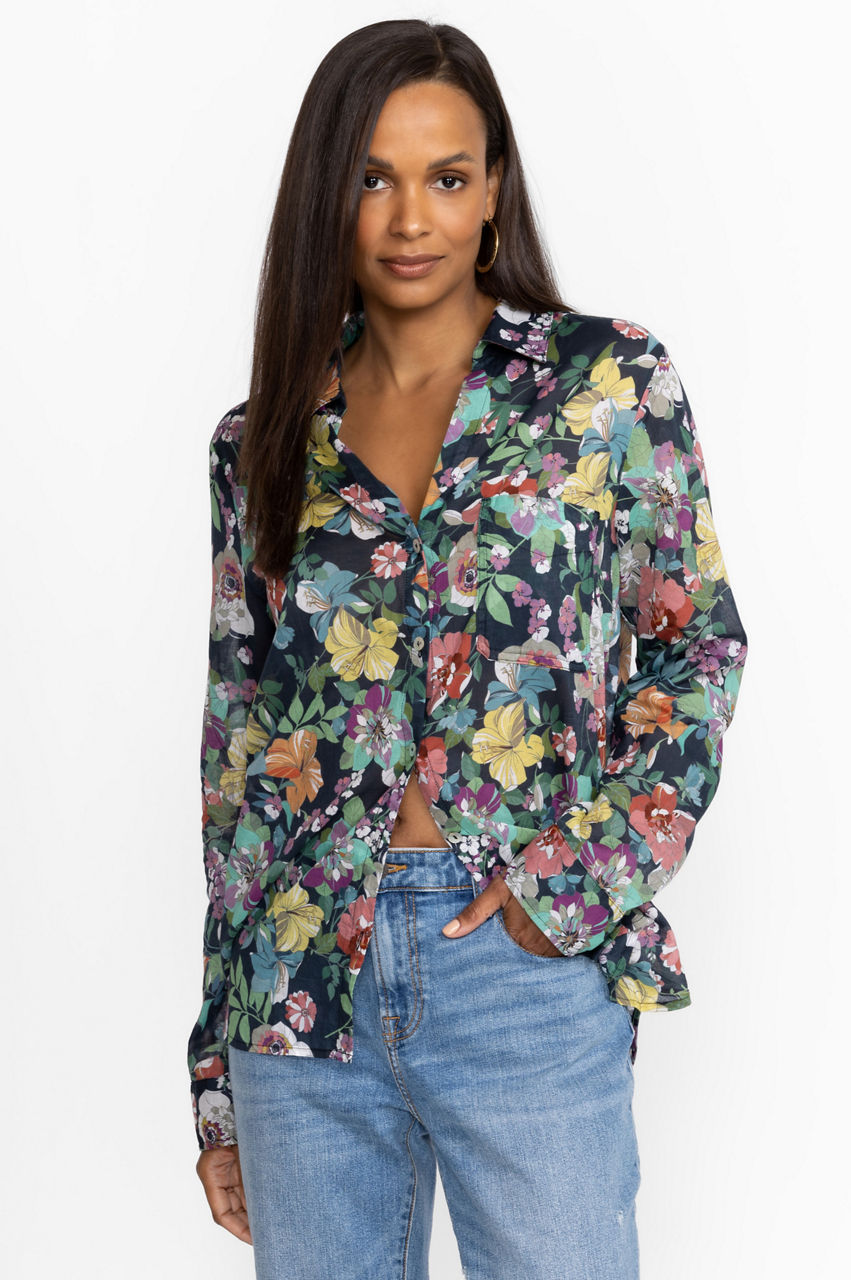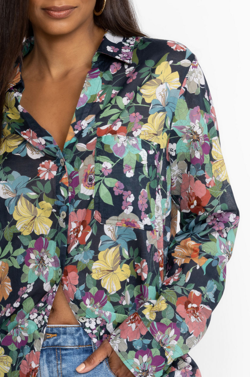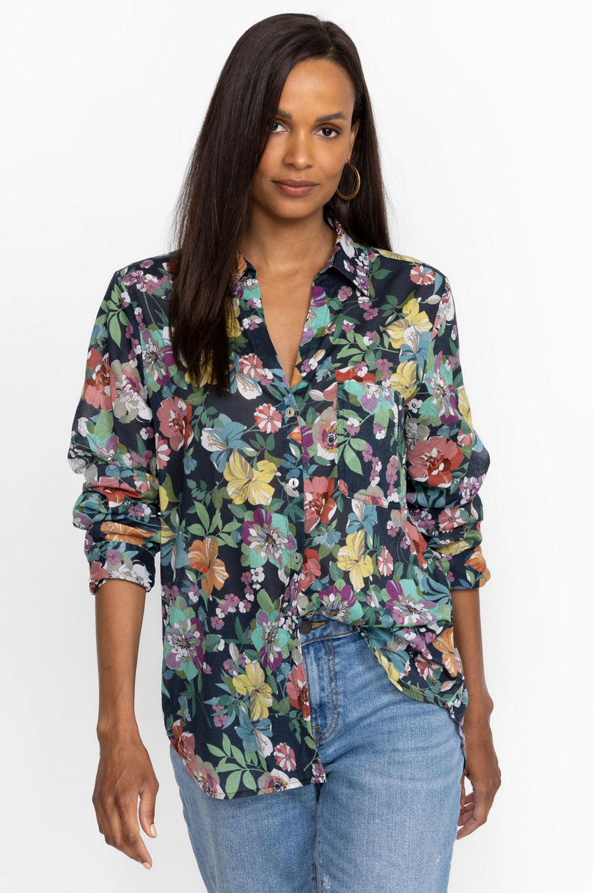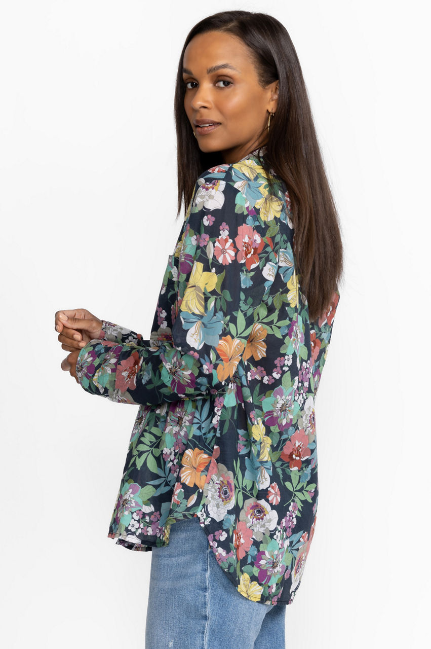 Bursting with bold floral bouquets, the Zahava Relaxed Shirt offers casual comfort with an air of sophistication and style. Crafted from 100% breathable cotton this curved-hem top marries femininity and function for a carefree look that is perfect for the warmest days. Pair with relaxed shorts and sandals for a resort inspired look.