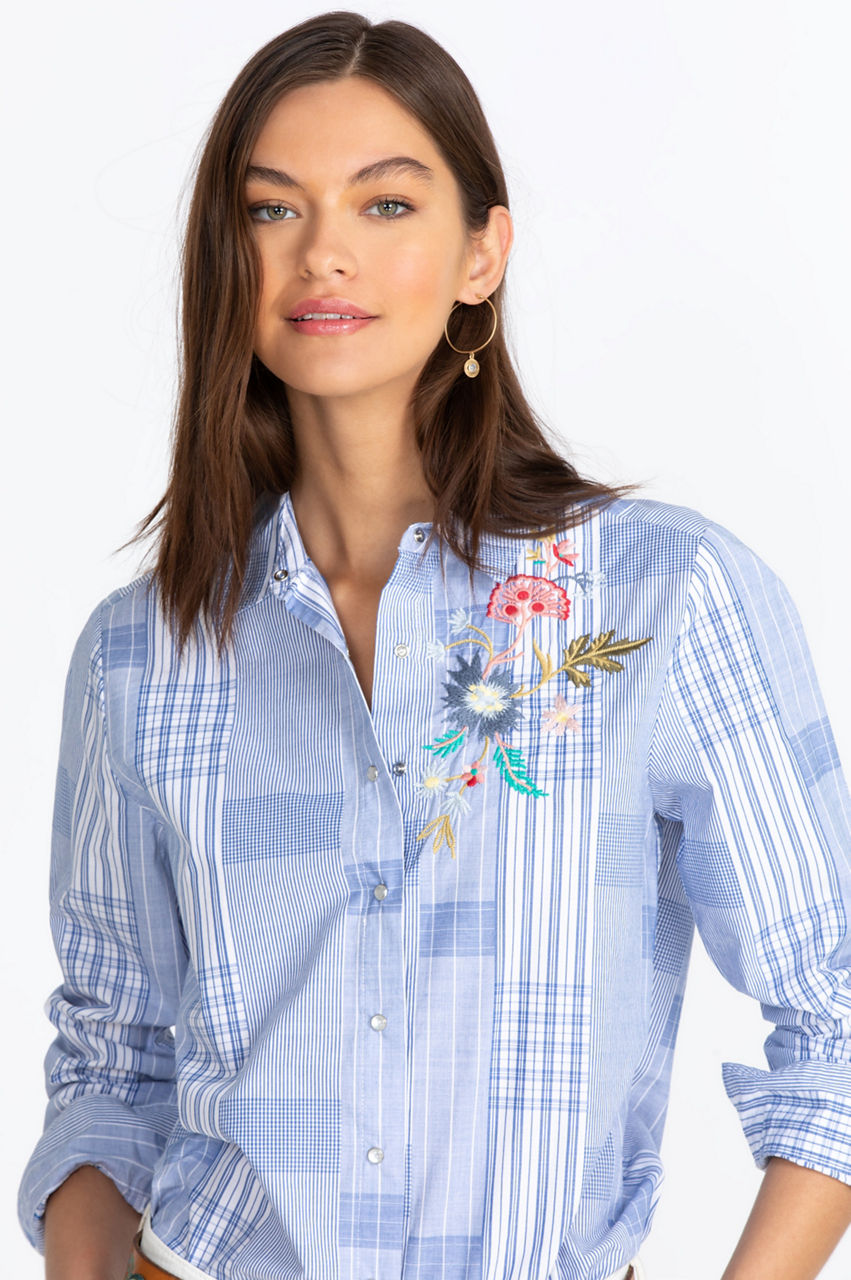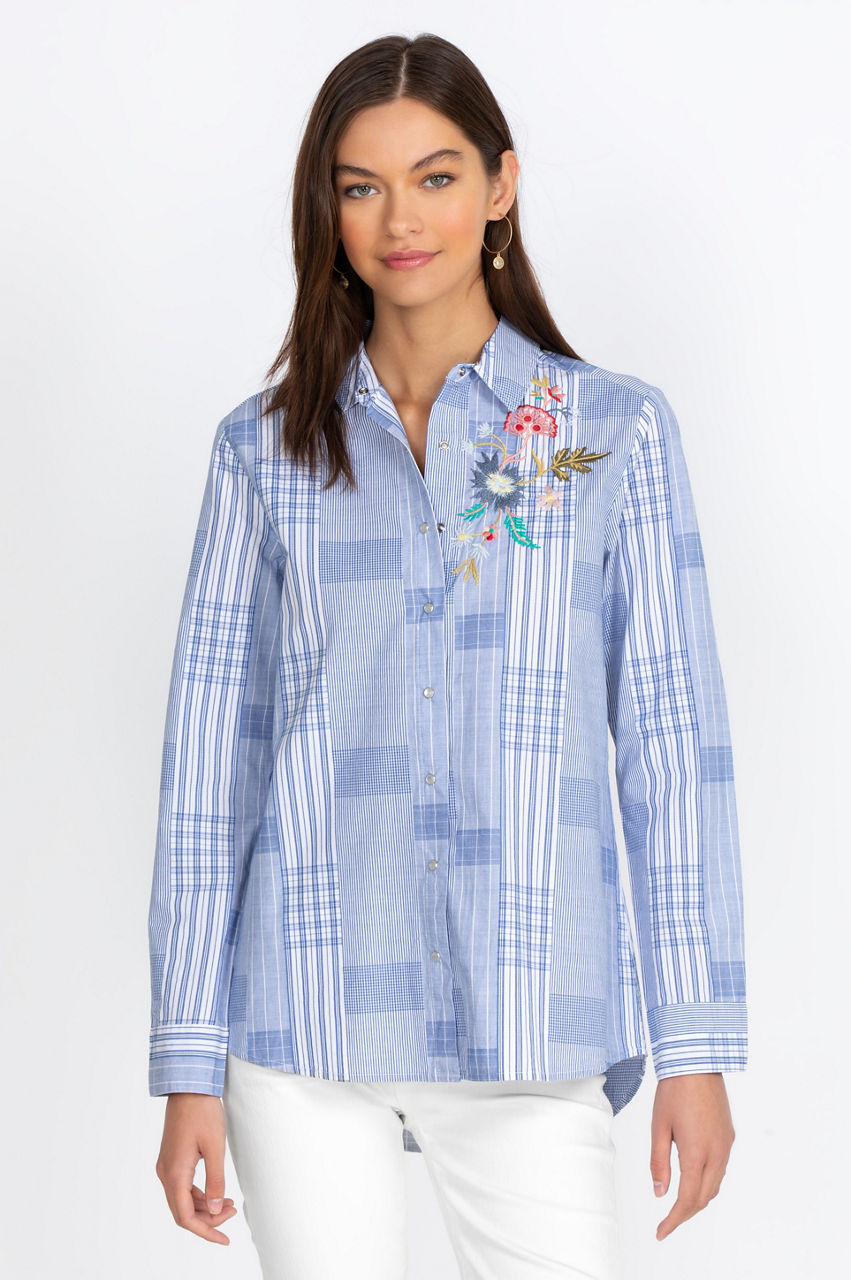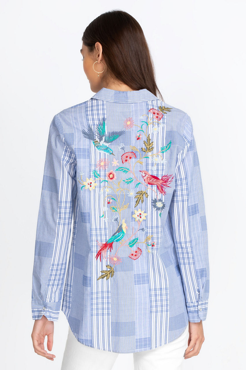 Our gorgeous design for the summer season, our Zanzibar Button-Down Shirt is a sustainable wardrobe essential for the warmer months and a great addition to any woman s closet., You will be flattered with a floral pattern on the front and back. Pair it easily with jeans or chinos for a casual daytime look.