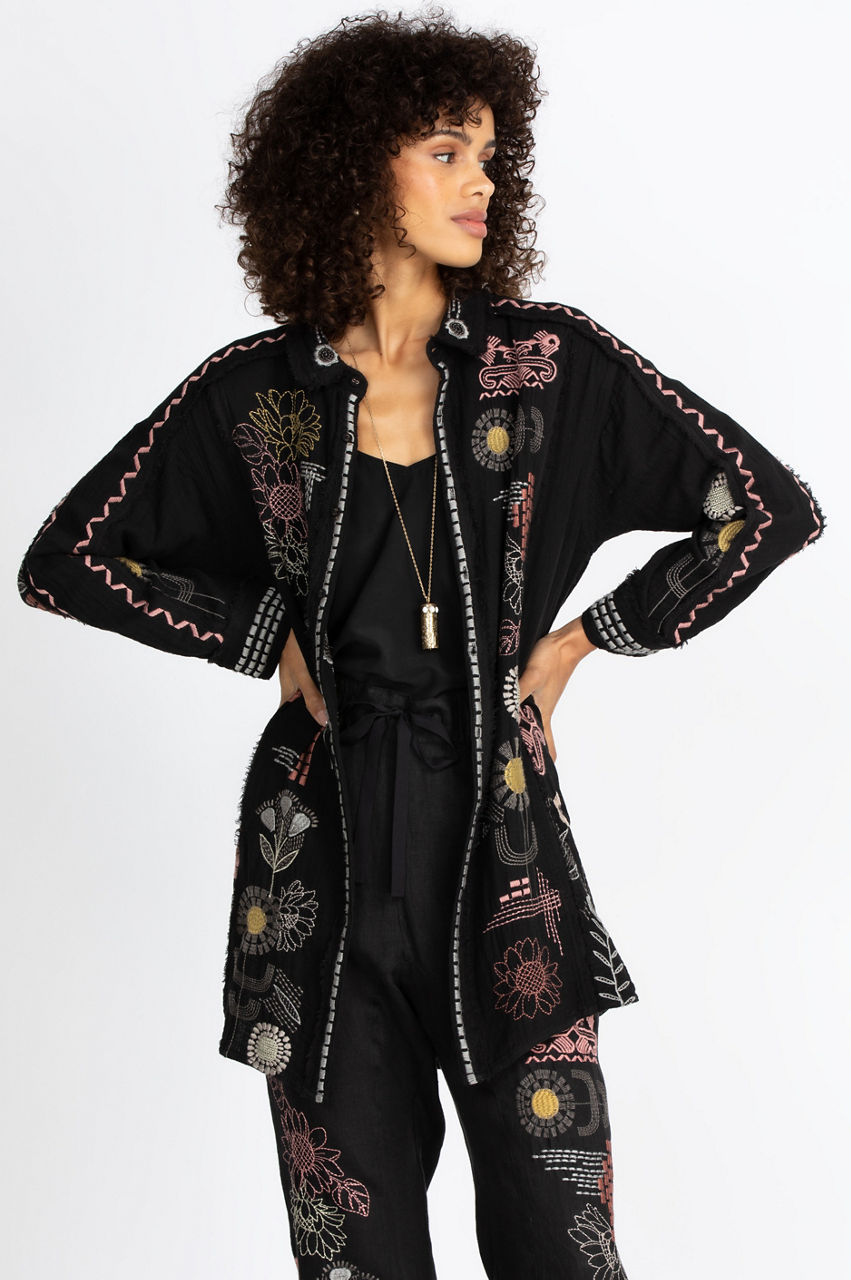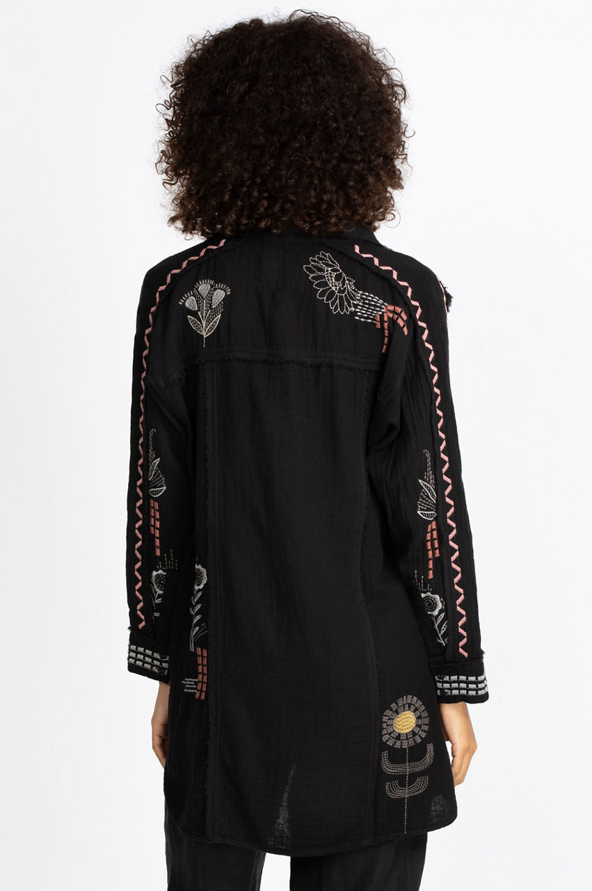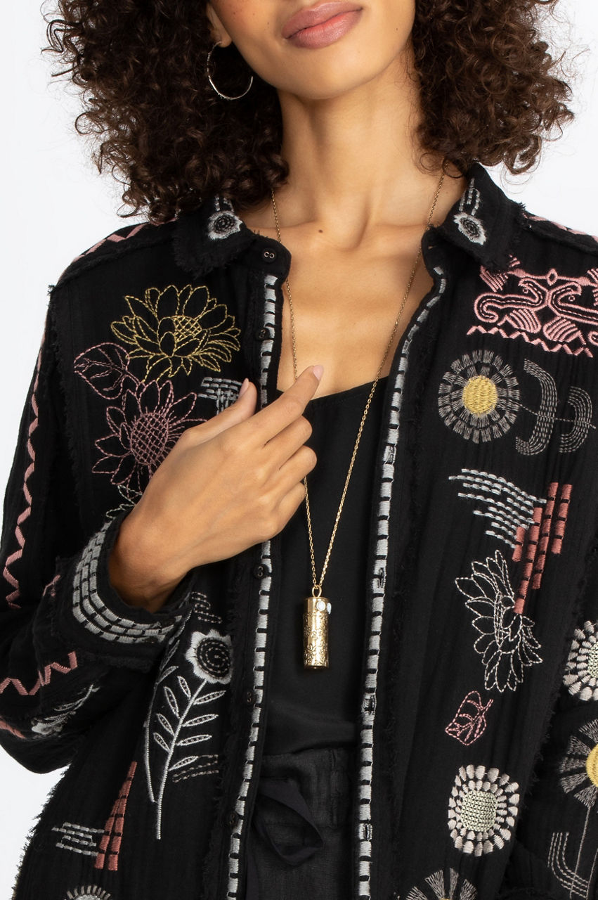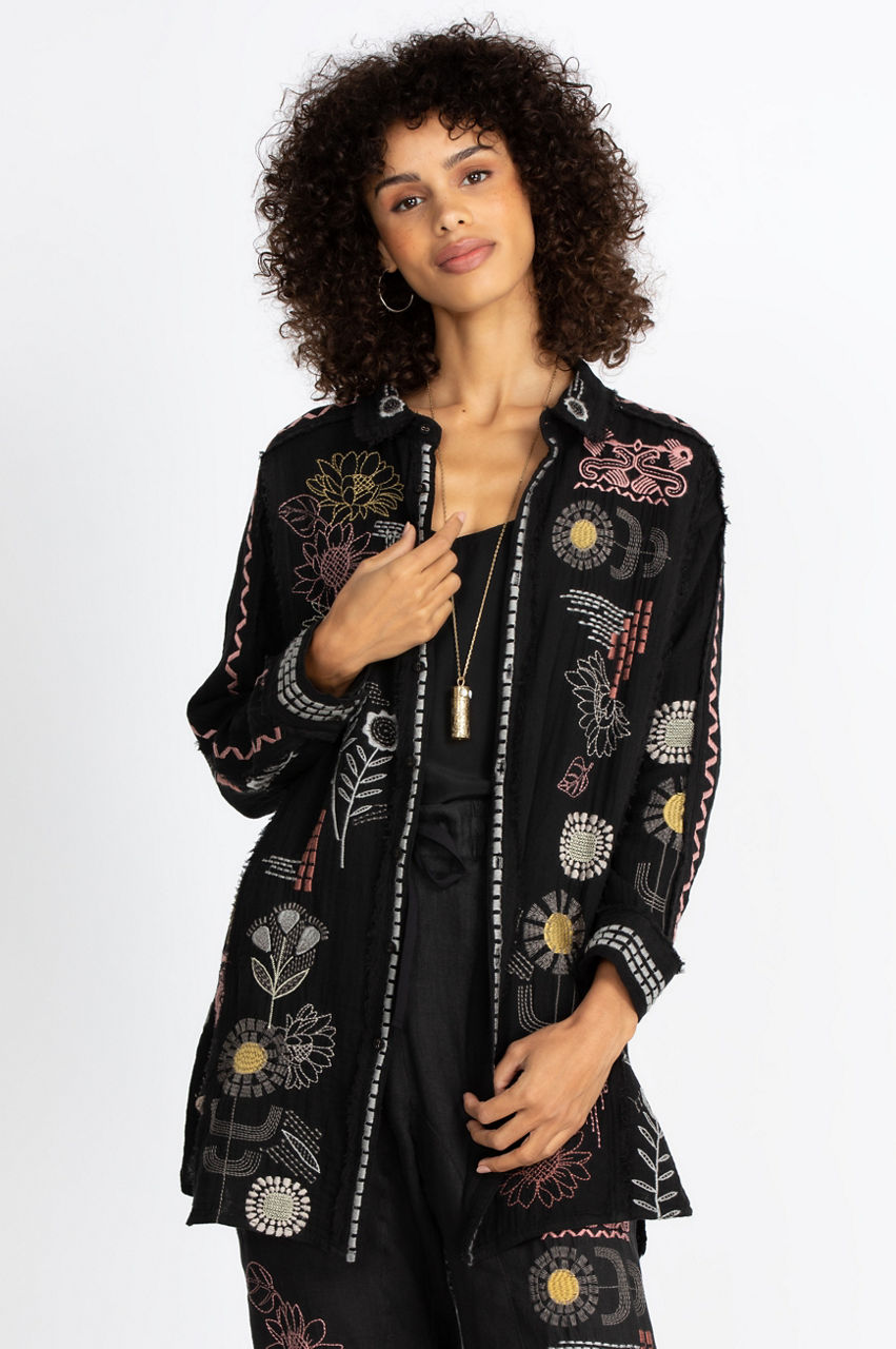 Our Zara Tunic flatters every figure with its free-flowing silhouette and gorgeous artisan-inspired embroideries. The breezy cotton gauze fabric floats to mid-thigh, while the embroidered accents add pops of color that captivate the eye. This ethereal tunic top pairs well with skinny jeans and flats for a casual look. Or you could pair it with leggings and knee-high boots for an elegant evening out. Add statement earrings to accent this lovely tunic, and you will be ready to go.