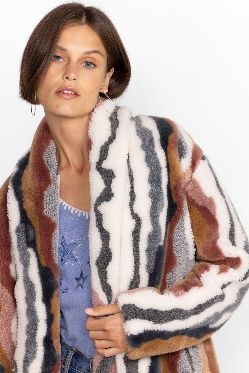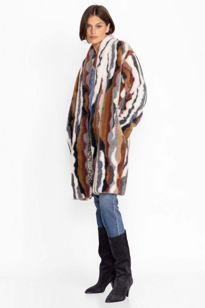 Underpinned with a 70s feel, the Ziggy Faux Fur Coat is a statement must-have for cooler weather. Crafted from soft faux fur, this coat features long sleeves, pockets, and a lining and is further punctuated with an exotic brown pattern. Wear with everything from elegant eveningwear to casual denim and knits.